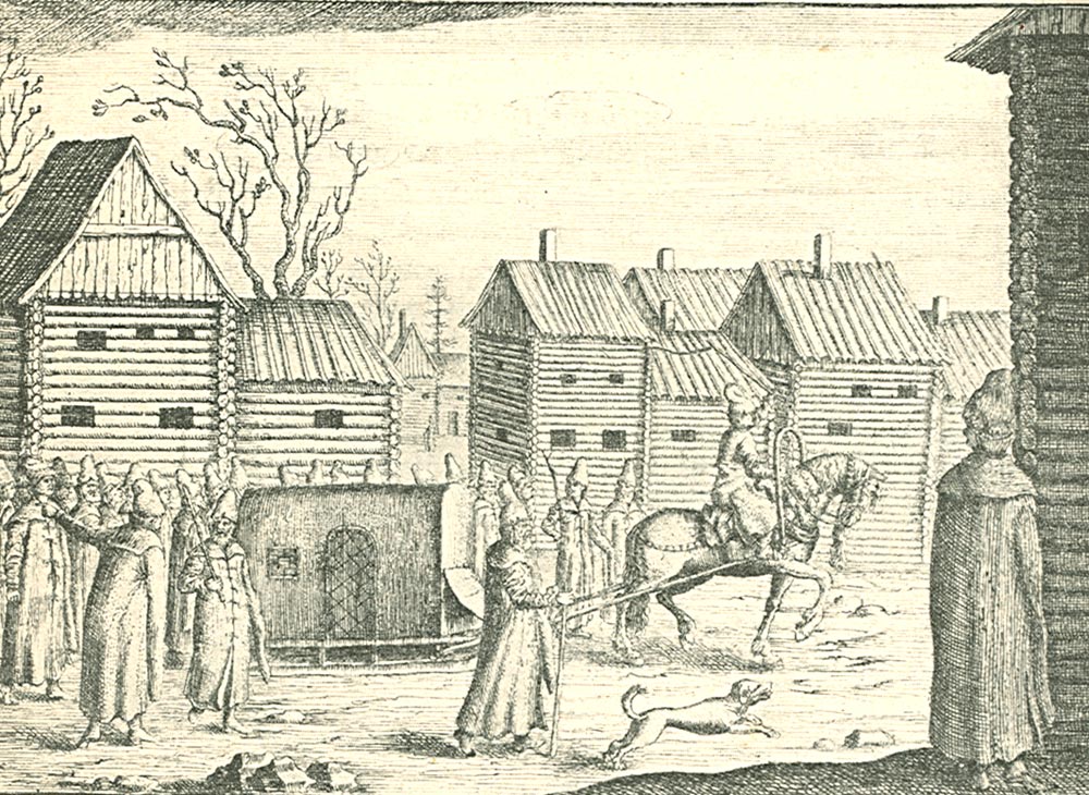 Московские улицы в XVII веке. Гравюра из книги А. Олеария.