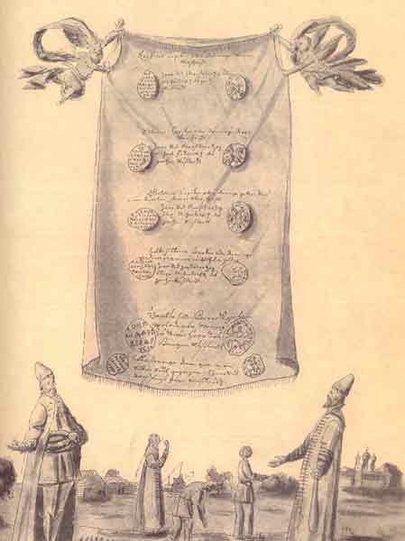 Свадебная церемония у знатных русских. Рисунок XVII века из альбома А. Олеария.
