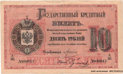 Государственный кредитный билет Образца 1866 г (выпуск 1882 - 1886 г.)