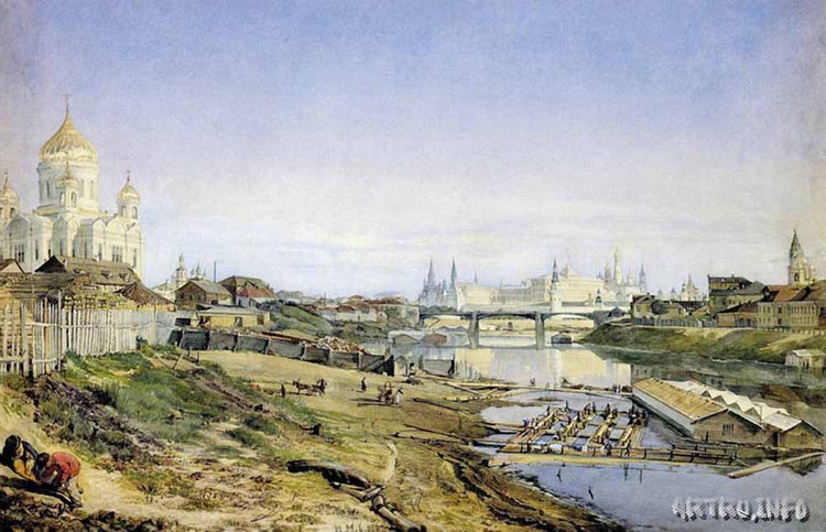 Маковский Н.Е. Вид от набережной Москвы-реки на храм Христа Спасителя и Каменный мост. 1875 г.