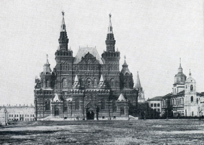 Происходивший во второй половине XIX века поиск подлинно народных форм выражения национального духа в искусстве нашел воплощение в таких зданиях, как Исторический музей (1874 – 1883; архитектор Владимир Шервуд) и здание Городской думы (1890 – 1892; архитектор Дмитрий Чичагов).
