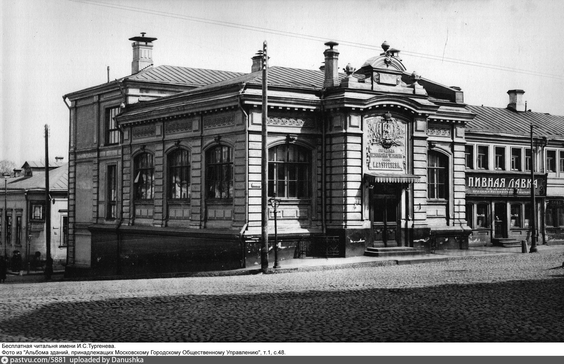 Читальню планировали разместить в наемной квартире, но уже в мае 1884 года Морозова обратилась в Думу с предложением построить на собственный счет отдельное здание по проекту архитектора Д.Н. Чичагова конце Сретенского бульвара у Мясницких ворот (впоследствии Тургеневская площадь, 1).