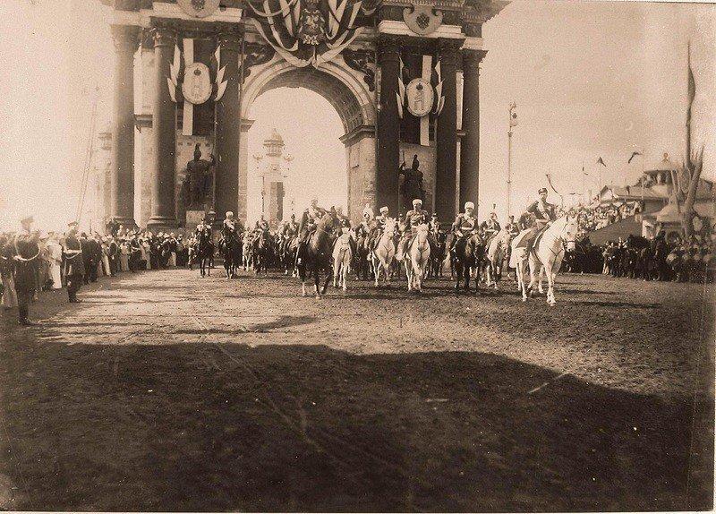 <…> Молебствие закончилось провозглашением многолетия, причем протоиереем П.В. Приклонским была сказана приличествующая случаю речь. После молебствия всем присутствовавшим было предложено занять места в вагонах, убранных национальными флагами.