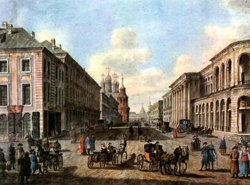 В основном в Москве селилось дворянство средней руки, без больших капиталов, так что город строился в дереве, а не в камне. Отсюда главное бедствие – пожары. С ними боролись по мере сил, и нельзя сказать, чтобы безуспешно: пожарные команды год от года совершенствовали свое ремесло. От огня была одна польза – выгорали целые улицы с хаотической застройкой. Восстанавливались же они по «красным линиям» на городских планах, то есть в строгую шеренгу, фасад к фасаду по линейке. Московская архитектура XVIII века несет на себе отпечаток трех стилей: барокко, рококо и классицизма при очевидной доминанте последнего. Конечно, до нас дошли в основном каменные постройки, каковыми были, как правило, государственные учреждения, составлявшие социальную инфраструктуру города – больницы, дома призрения, сиротские приюты. Каменным же был и московский водопровод, соединяющий город с Мытищами.