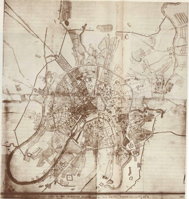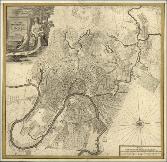 Составить представление о новой Москве можно по городскому плану 1739 года, где она изображается в границах Компанейского вала.
