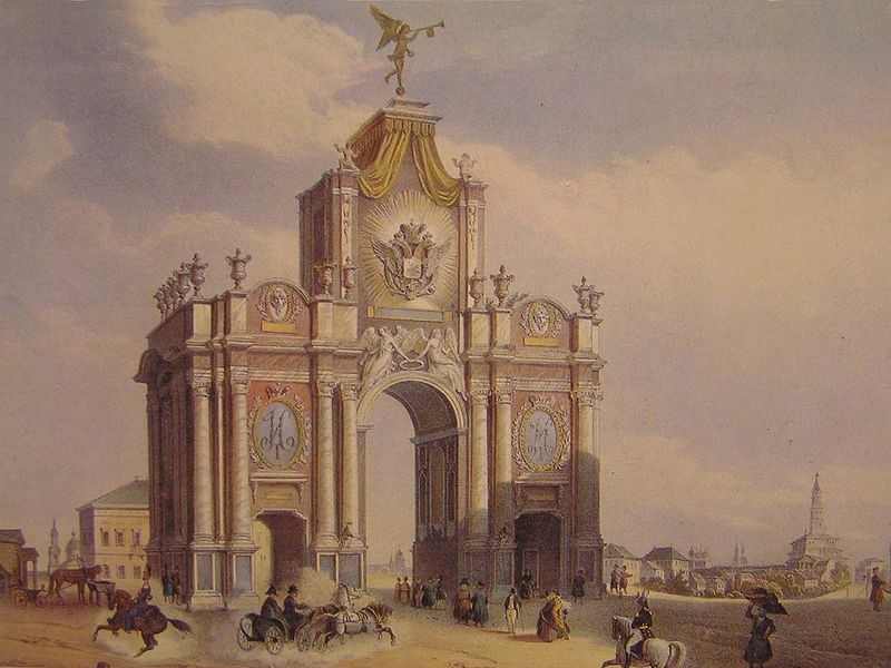 Красные ворота. Архитектор Д. Ухтомский. Середина XVIII века. Гравюра XIX века.