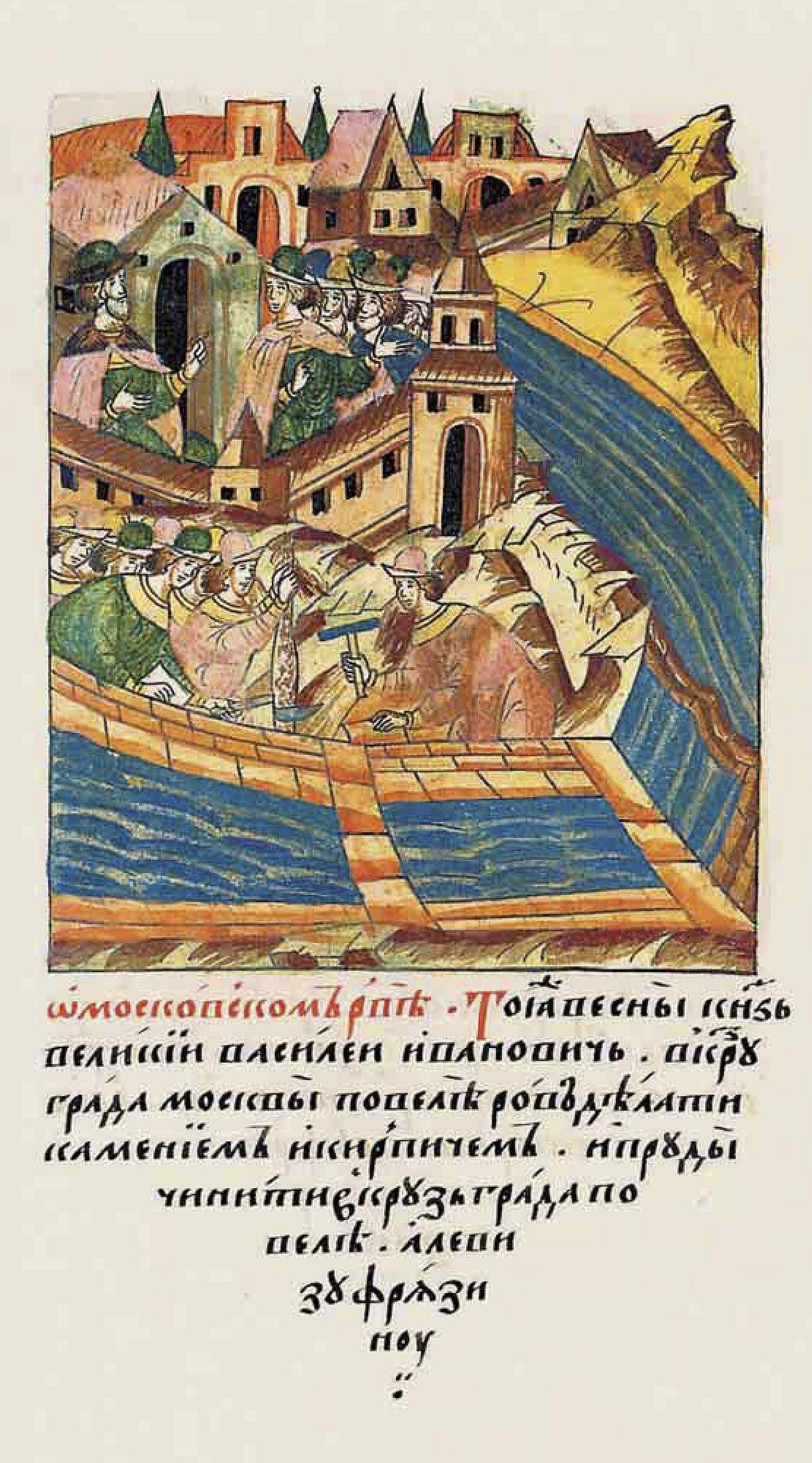 В 1508 году «Тоя же весны князь великій Василей Ивановичь вкруз града Москвы повелѣ ровъ дѣлати каменіемъ и кирпичемъ и пруды чинити вкруз града повелѣ Алевизу Ѳрязину.». Летописи приводят и более конкретные сведения об этих работах, начавшихся в 1507 и оконченных в 1519 году, — строились стены, башни, плотины и ров вдоль реки Неглинной.