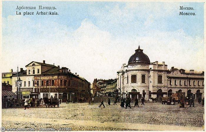 До 1812 года на площади стоял великолепный Арбатский театр. Деревянное здание театра, окруженное колоннами, по проекту архитектора К.И. Росси было построено в 1808 году в самом начале бульвара, где сейчас стоит памятник Гоголю. Декорации для театра делал художник М.И. Скотти.
