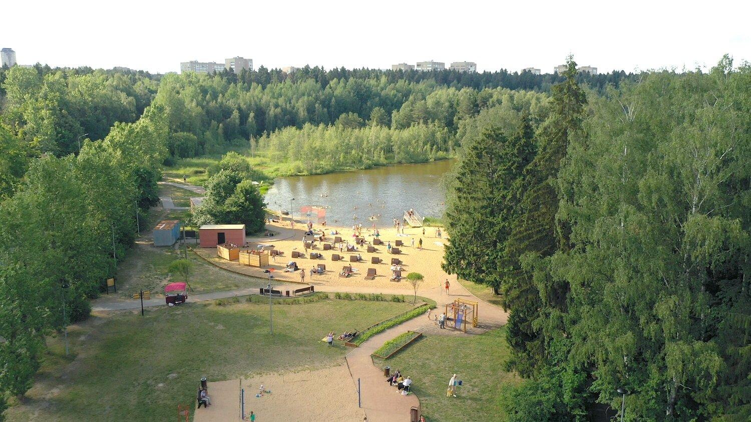 На берегу озера имеется небольшой песчаный пляж. Зона отдыха с 22 шезлонгами, место для пикника, а также пространство для занятий спортом появились здесь в 2018 году по программе «Мой район».