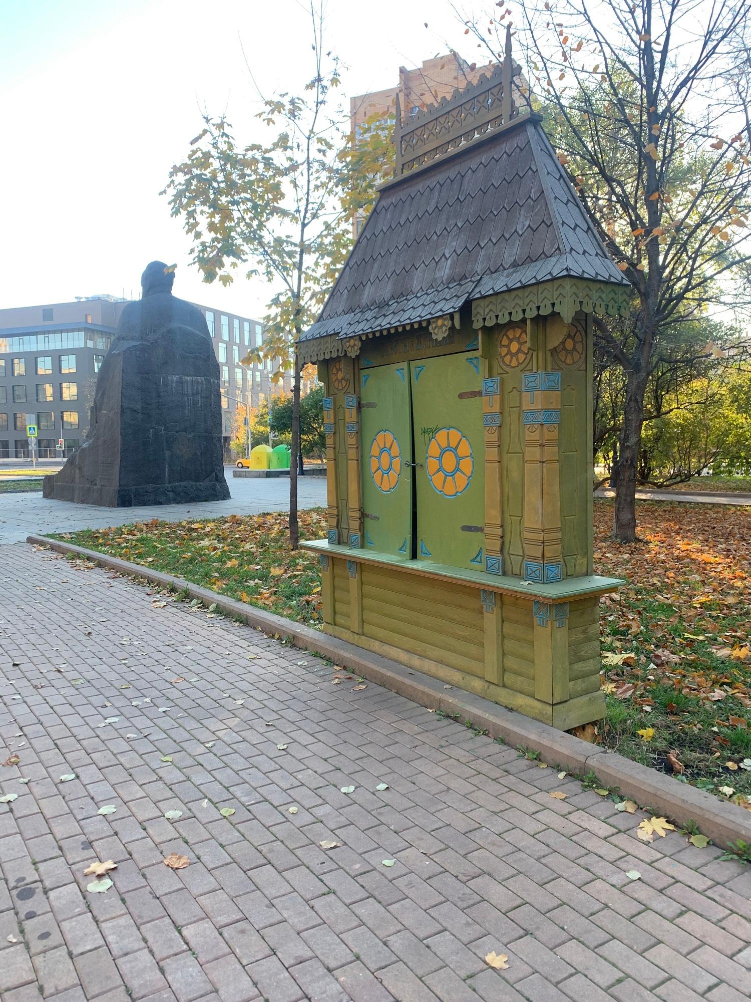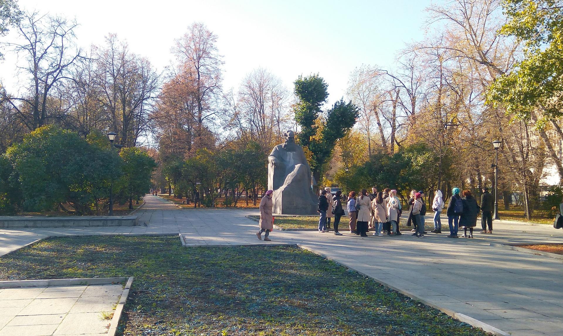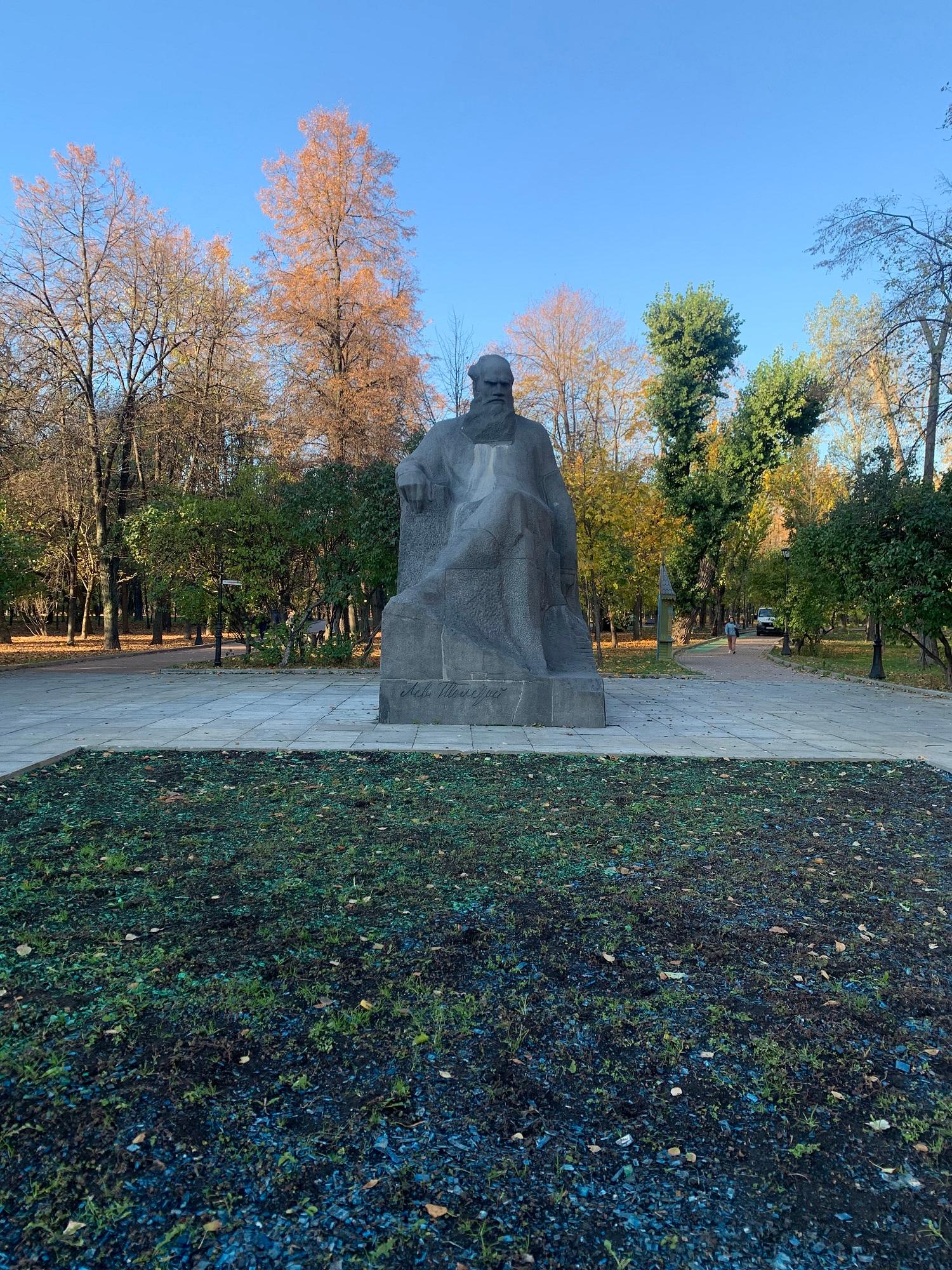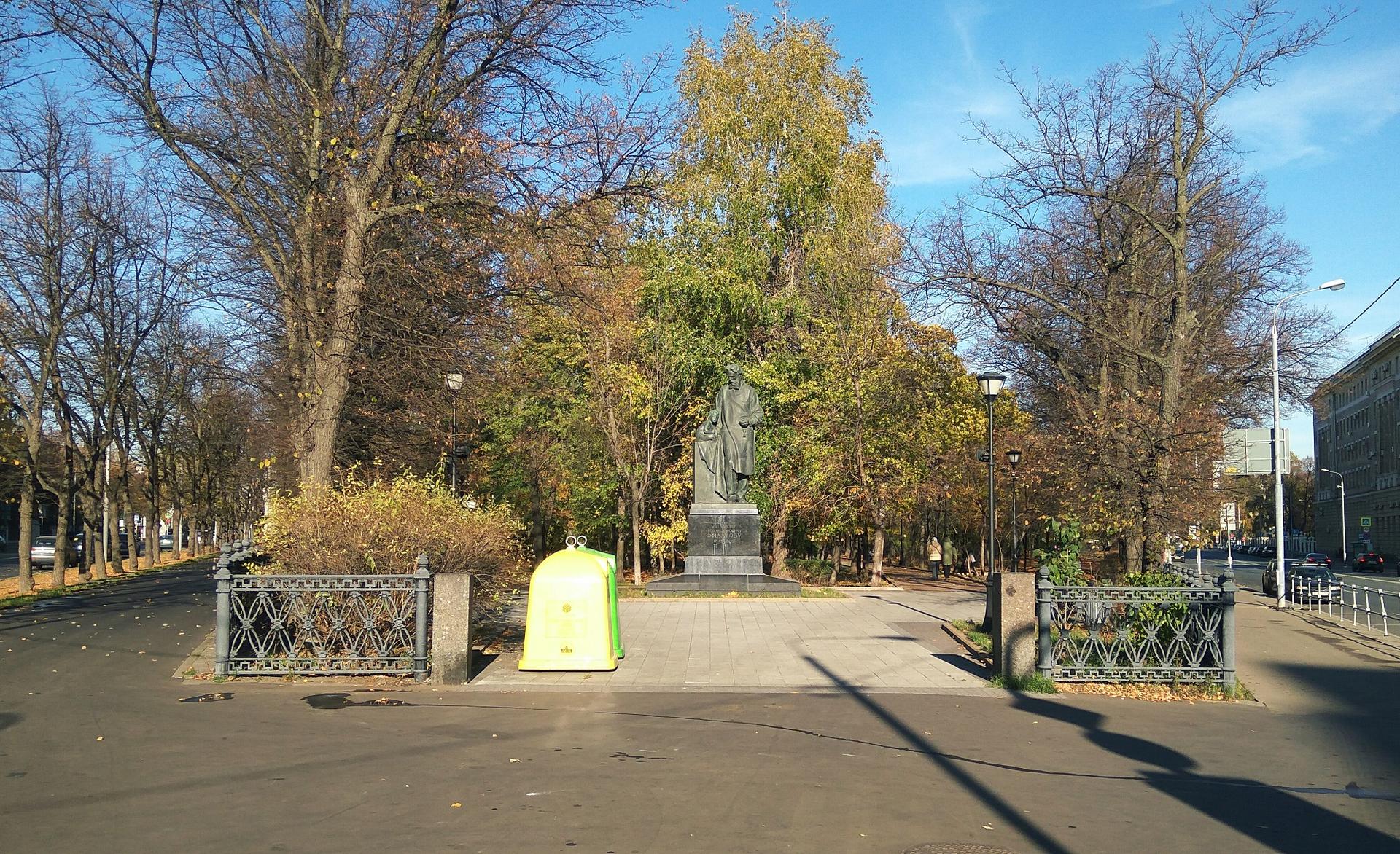 В 1948 году между клиническими корпусами и зданием Академии был разбит треугольный сквер. В 1972 году в сквере Девичьего поля был установлен памятник Л. Н. Толстому работы скульптора А. М. Портянко, выполненный автором в полном соответствии со словами Ленина: «экая глыбища». Он пришёл на смену, стоявшему здесь ранее памятнику всё тому же Льву Николаевичу известного советского скульптора С. Д. Меркурова.