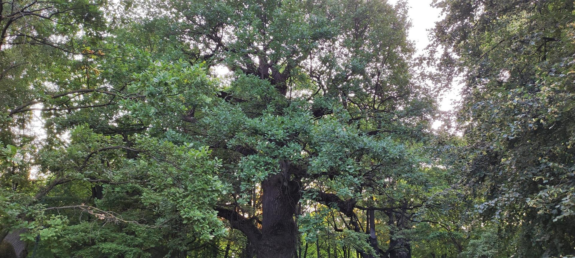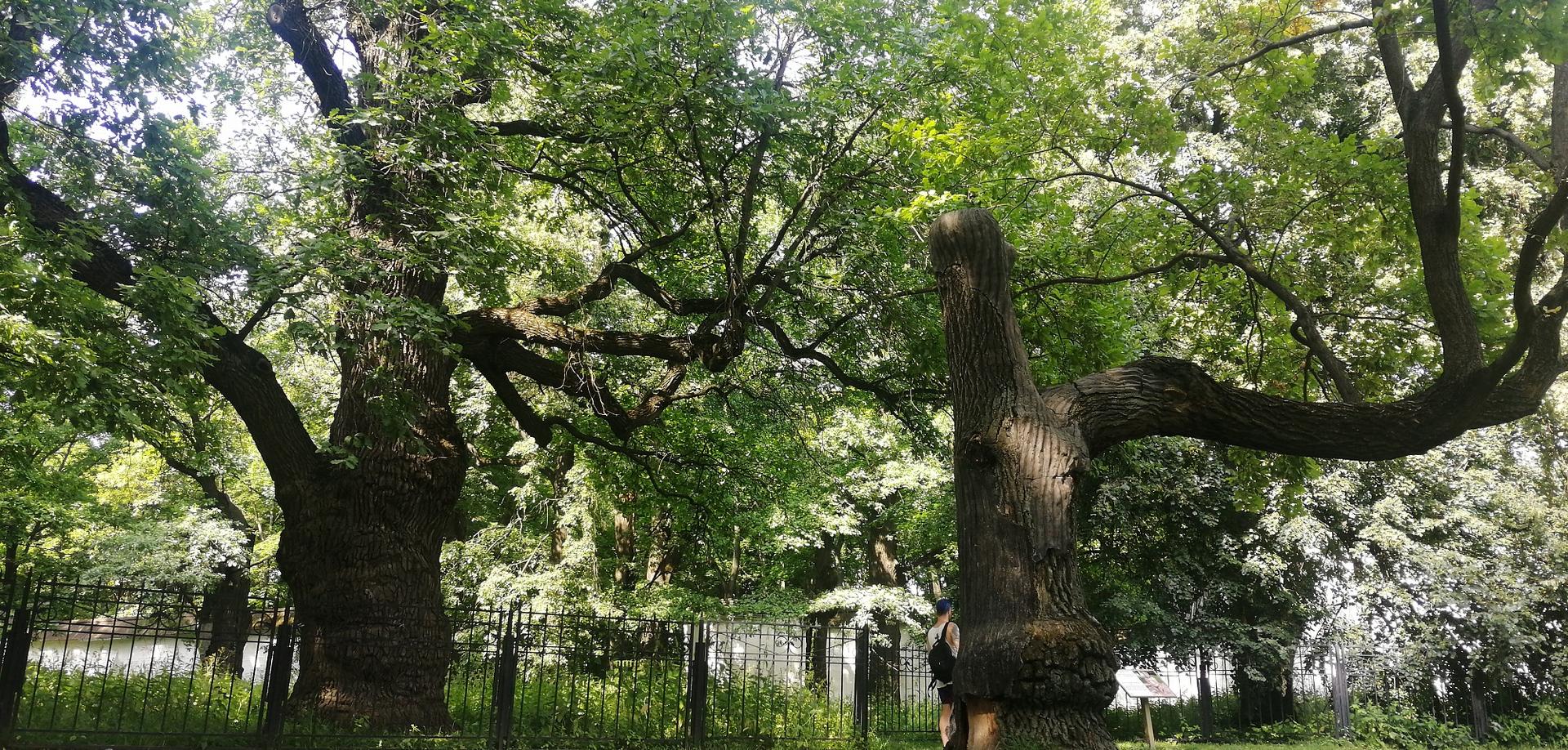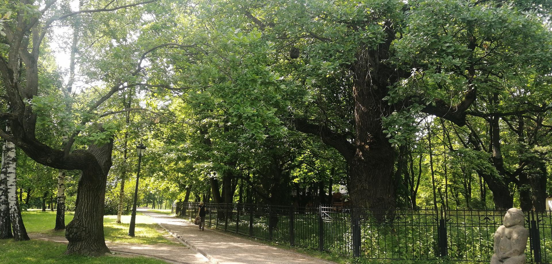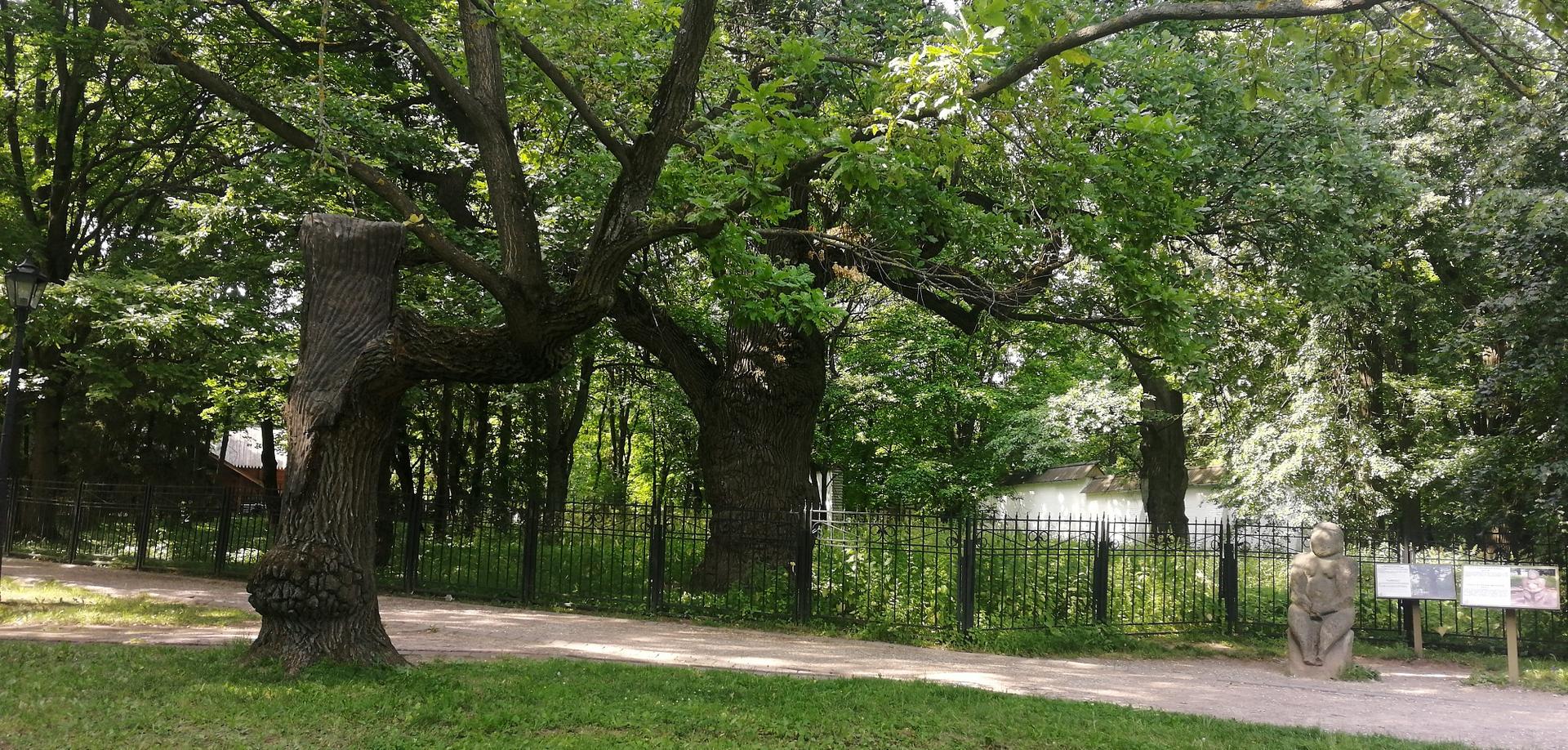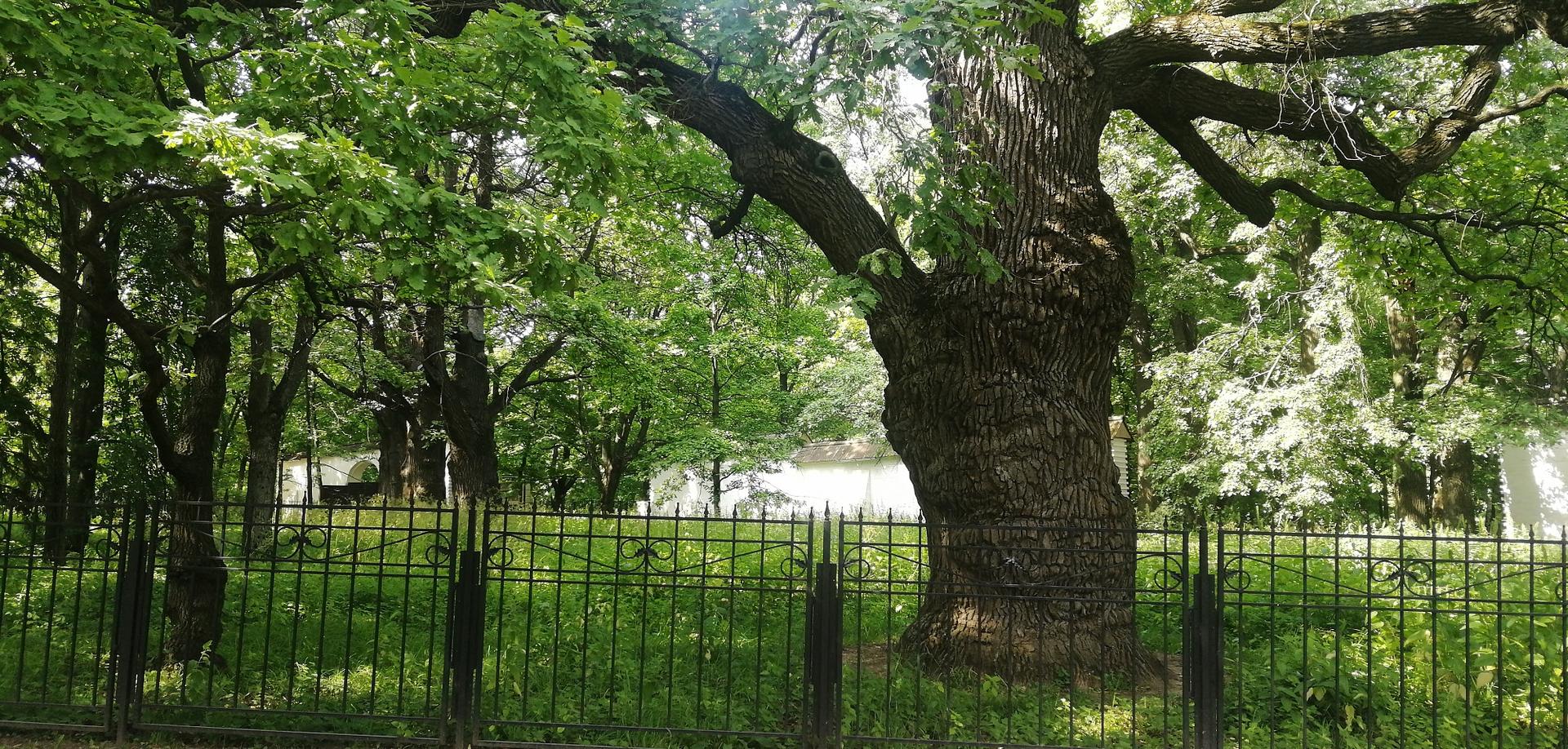 Дубовая роща находится между домиком Петра I и церковью Георгия Победоносца. Самому старшему дубу - 600 лет, его высота примерно 25 метров.
