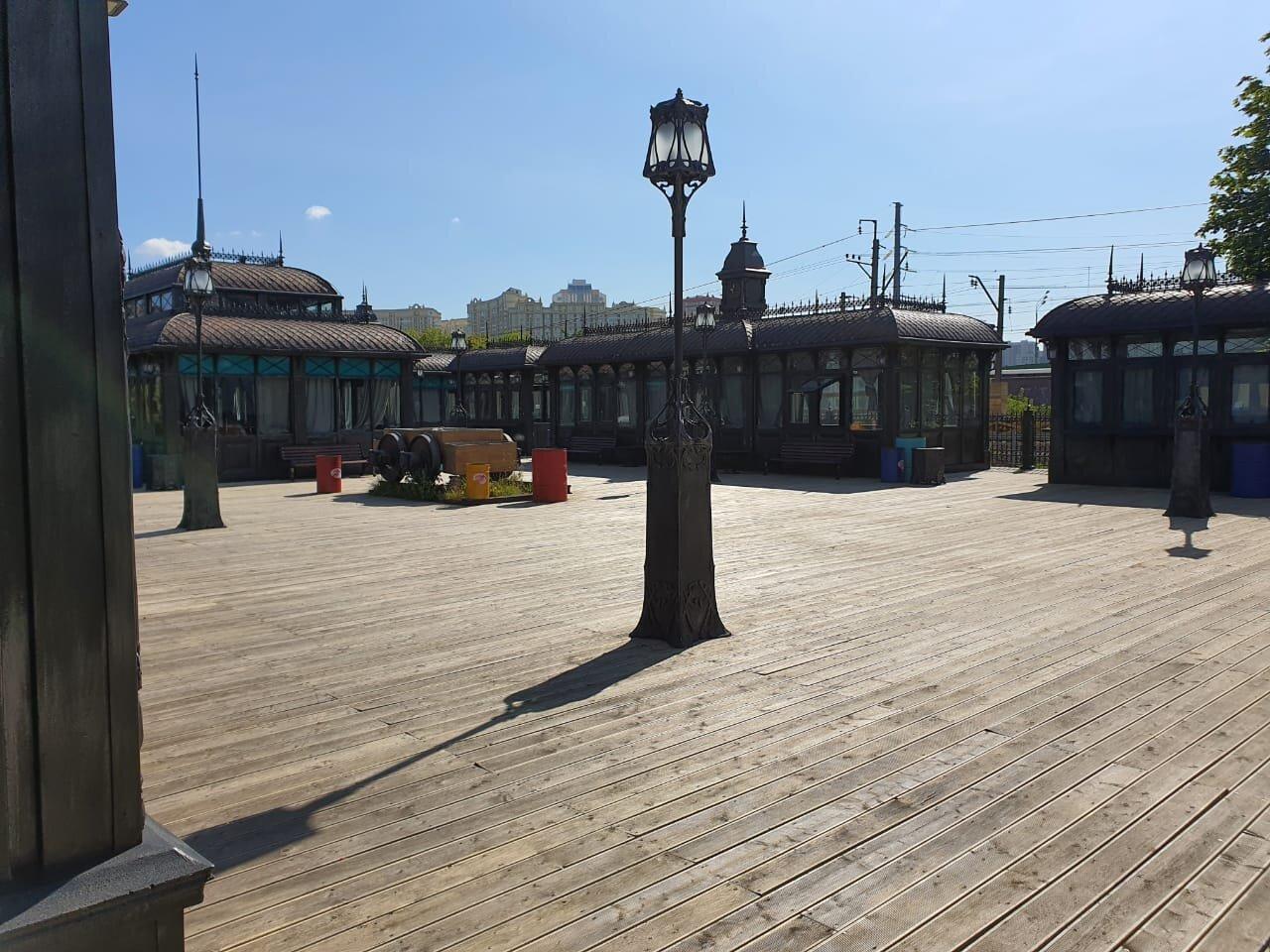 В результате в районе на западе столицы появилось большое развлекательное пространство в виде французского вокзала: здесь установлены нарядные шале, стилизованные готические ворота и необычные фонари. Между двумя домиками можно заметить бронзовую статую кавалера в котелке. На территории также установлена большая карусель с фигурами лошадей, есть разнообразные лавки и кафе. На площадке регулярно проходят городские фестивали «Московские сезоны» при поддержке Правительства и мэра Москвы.