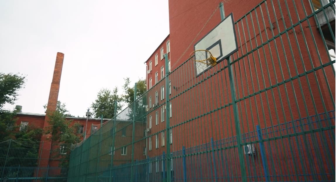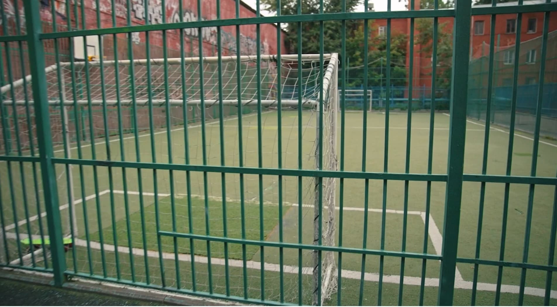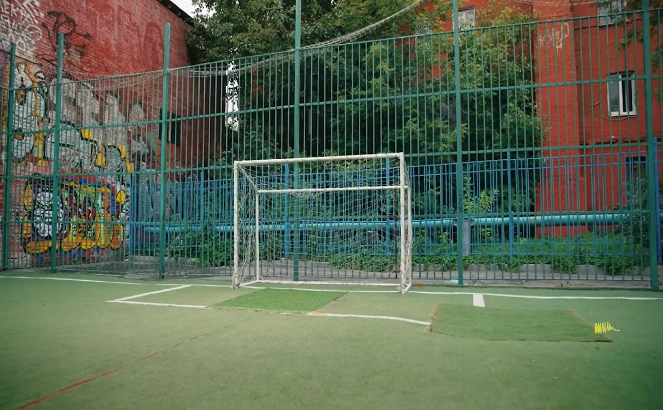 Эта коробка сочетает в себе природный пейзаж культурно-исторической части столицы и современные городские атрибуты, способствующие погружению в атмосферу незатейливого дворового футбола.