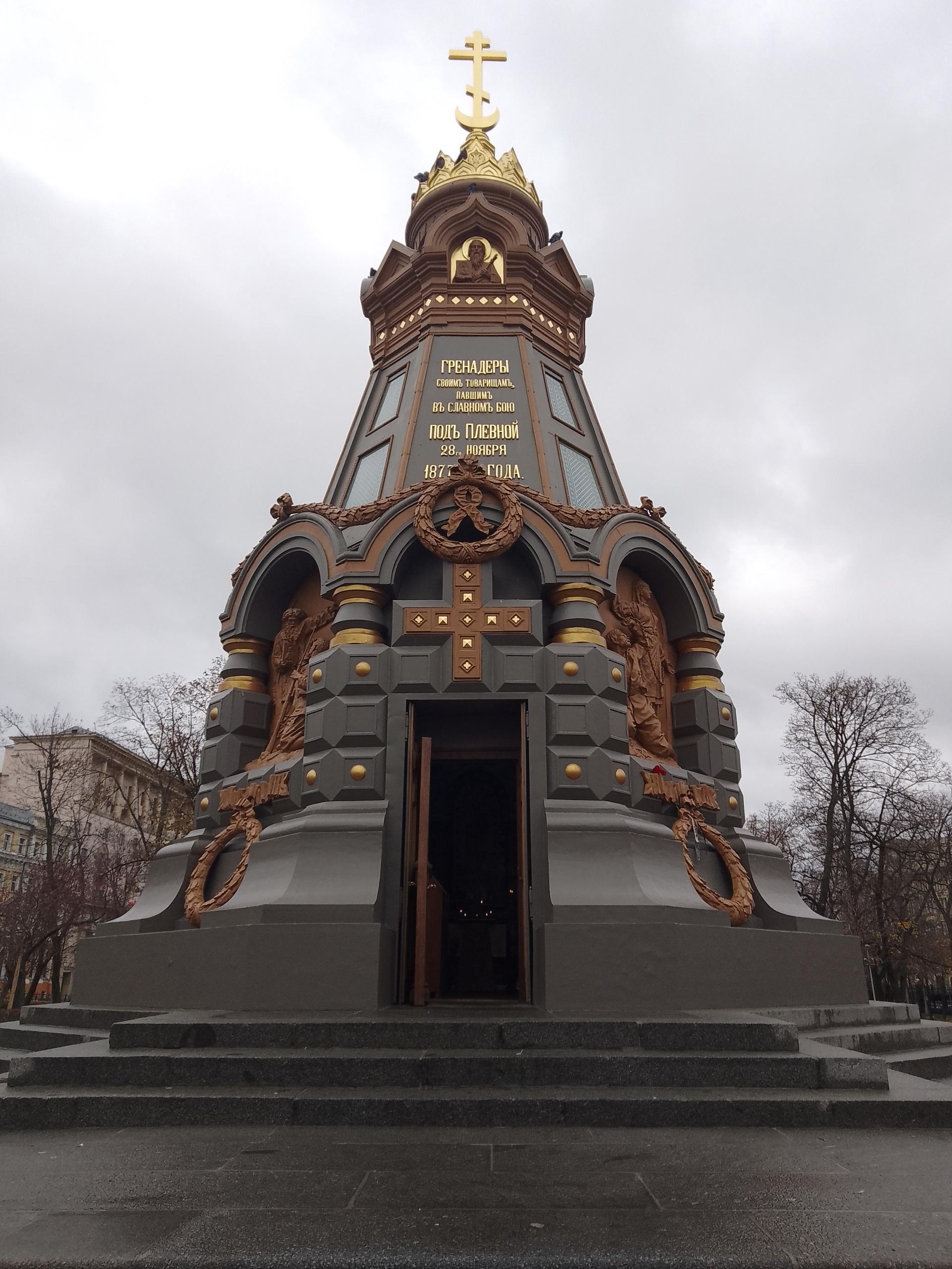 27 ноября 1887 г. в северной части сквера торжественно был открыт памятник-часовня русским гренадерам, павшим в бою под Плевной, во время Русско-турецкой войны 1877-1878 гг. Авторы проекта: академик архитектуры В.О. Шервуд, инженер-полковник А.И. Ляшкин. Часовня, в настоящее время являющаяся главной достопримечательностью сквера, была построена на пожертвования гренадерских полков, однополчан погибших воинов.