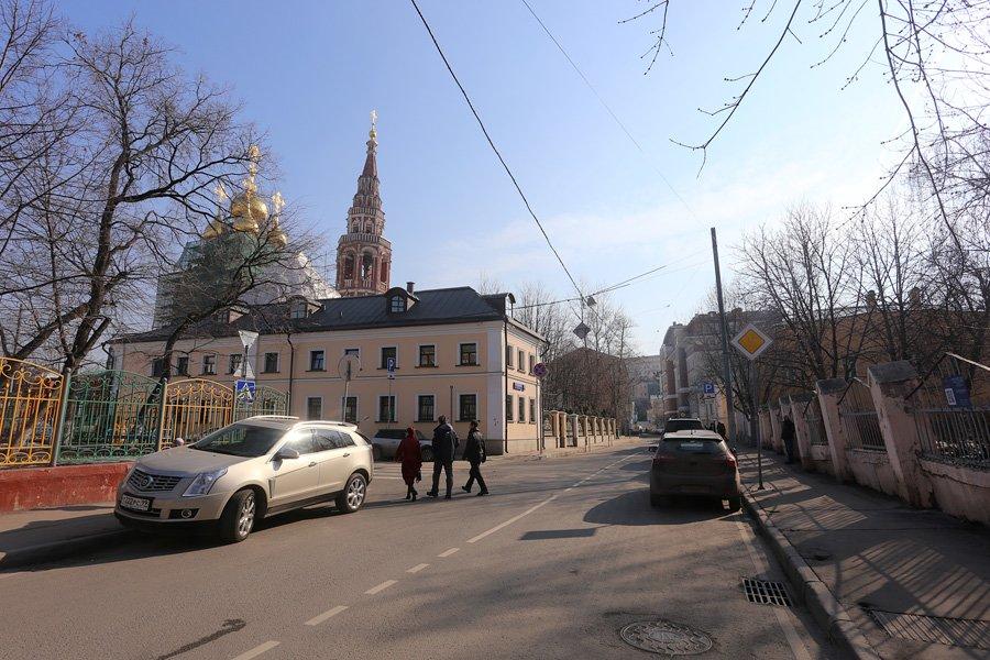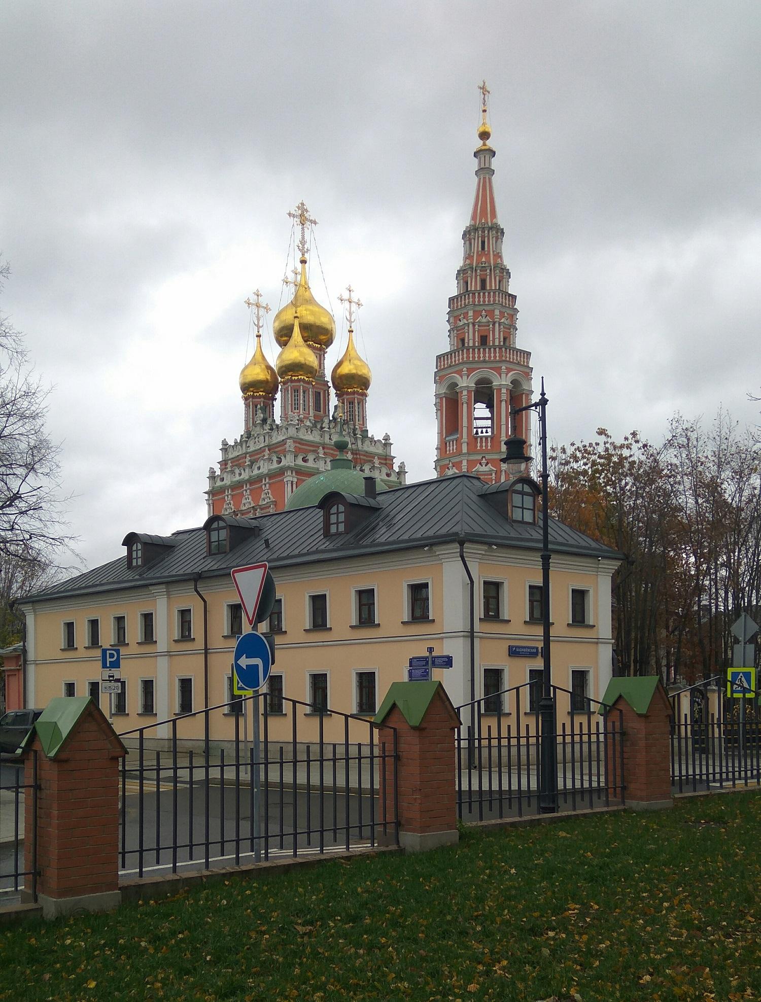 Исторический центр Кадашевской слободы находился у храма Косьмы и Дамиана Ассийских – сейчас на его месте газон у дома 4 на Б. Полянке. Потом центр несколько сместился: в конце 15 века был построен новый храм – предшественник нынешнего храма Воскресения в Кадашах, а 1-й Кадашевский переулок повторяет линию главной улицы нового ядра слободы – Воскресенской. В 17 веке слобода занимала совершенно особое положение: новый Воскресенский храм находился на одной линии от колокольни Ивана Великого к храму Вознесения в Коломенском, а статус его определялся порядком звона. Первым звонили в Кремле, потом звонил Кадашевский храм – а потом уже все остальные приходские церкви. В 16 веке к Кадашевской слободе с разных сторон подступили разросшиеся другие сильные слободы: Толмачевская, Голутвинская – а поблизости находились государевы Садовнические слободы. Таким образом, на низком берегу Москвы-реки, напротив Кремля возник некий сильный слободской центр, уравновешивающий аристократические улицы высокого берега.