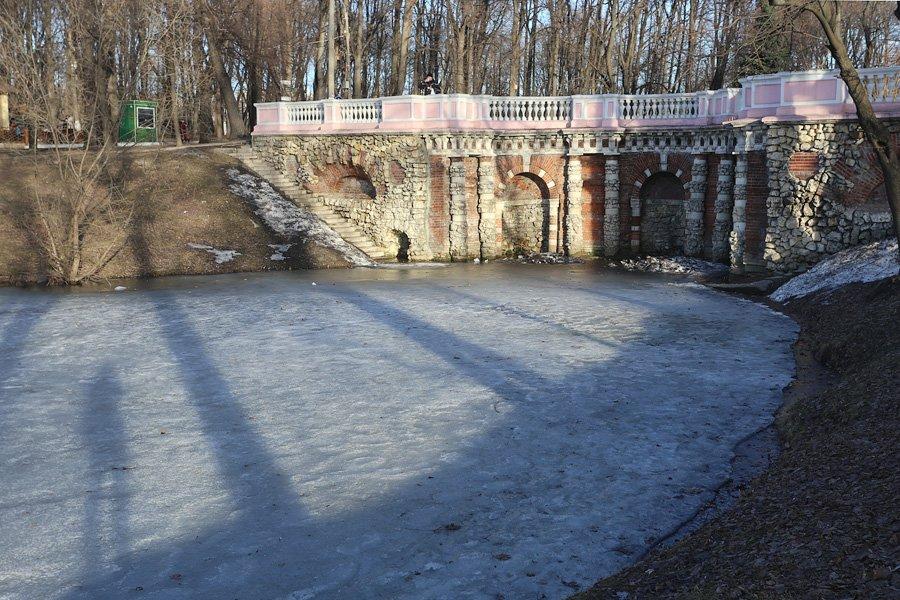 Поначалу планировка Головинского сада была исключительно прямоугольной, о чем свидетельствуют сохранившиеся гравюры. Зеленые насаждения и дорожки занимали верхнюю террасу берега, а на пойменной террасе был спроектирован каскад прудов. Исключение составлял Большой пруд для катания на лодках, что располагался правее дворца. Этот прямоугольный пруд в верхней части парка сохранился, в отличие от Головинского дворца – тот окончательно сгорел в 1753 г. И пруд, и дворец проектировал архитектор Д. Иванов.