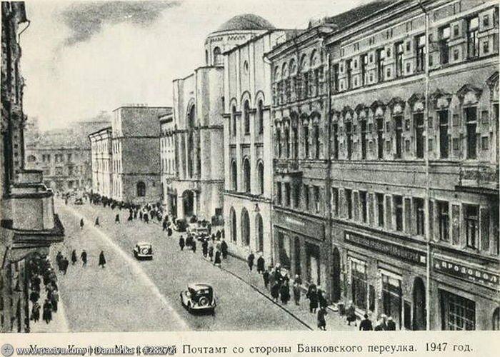 Во второй половине XIX века Мясницкая могла претендовать на роль главной улицы Москвы. Она стала активно застраиваться многоэтажными доходными домами, которые заняли банки и магазины современных товаров. На улице сосредоточились важнейшие пункты связи: почтамт, телеграф, телефонная станция; здесь также находились художественные учебные заведения, первая публичная библиотека в России.