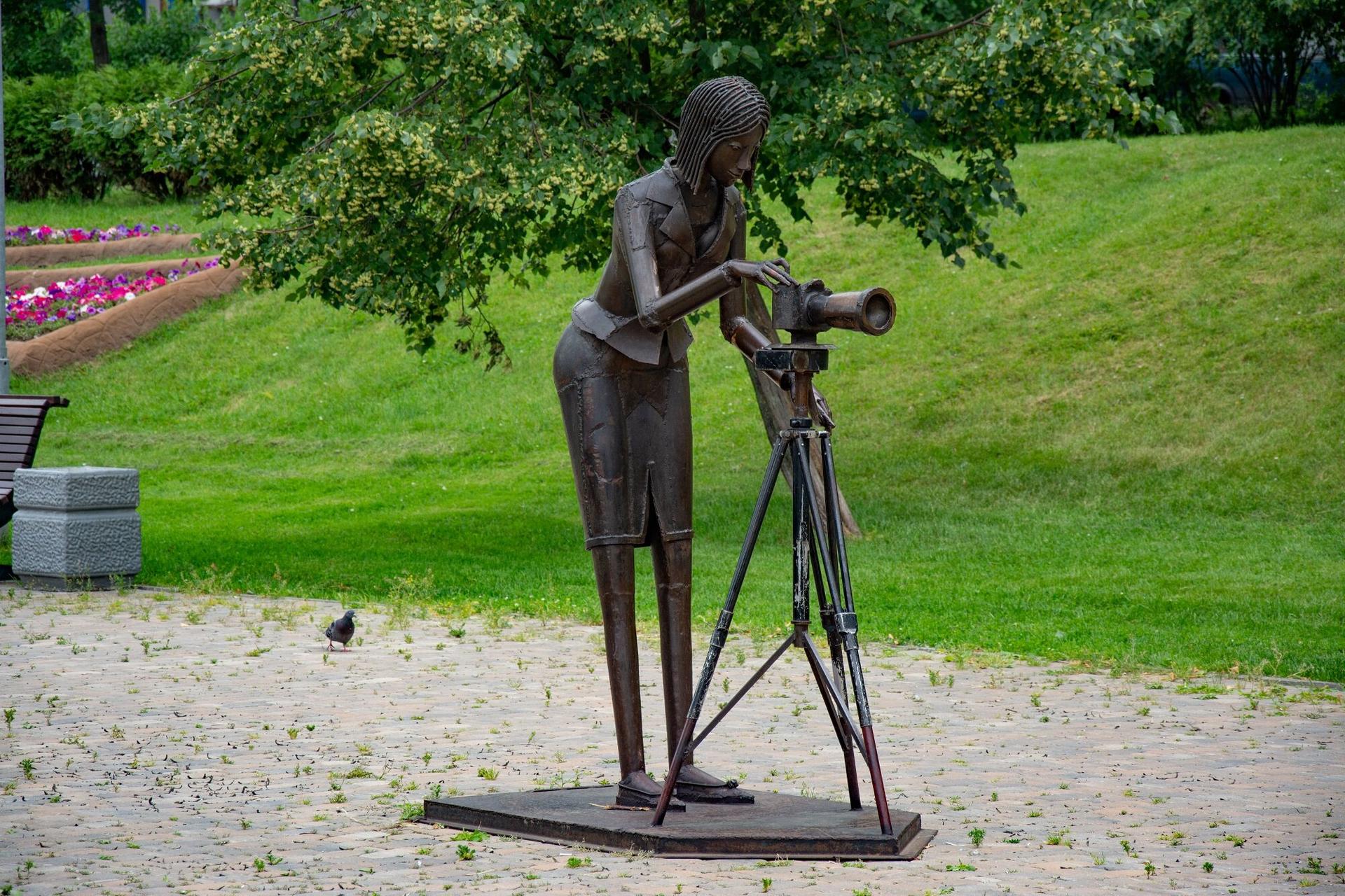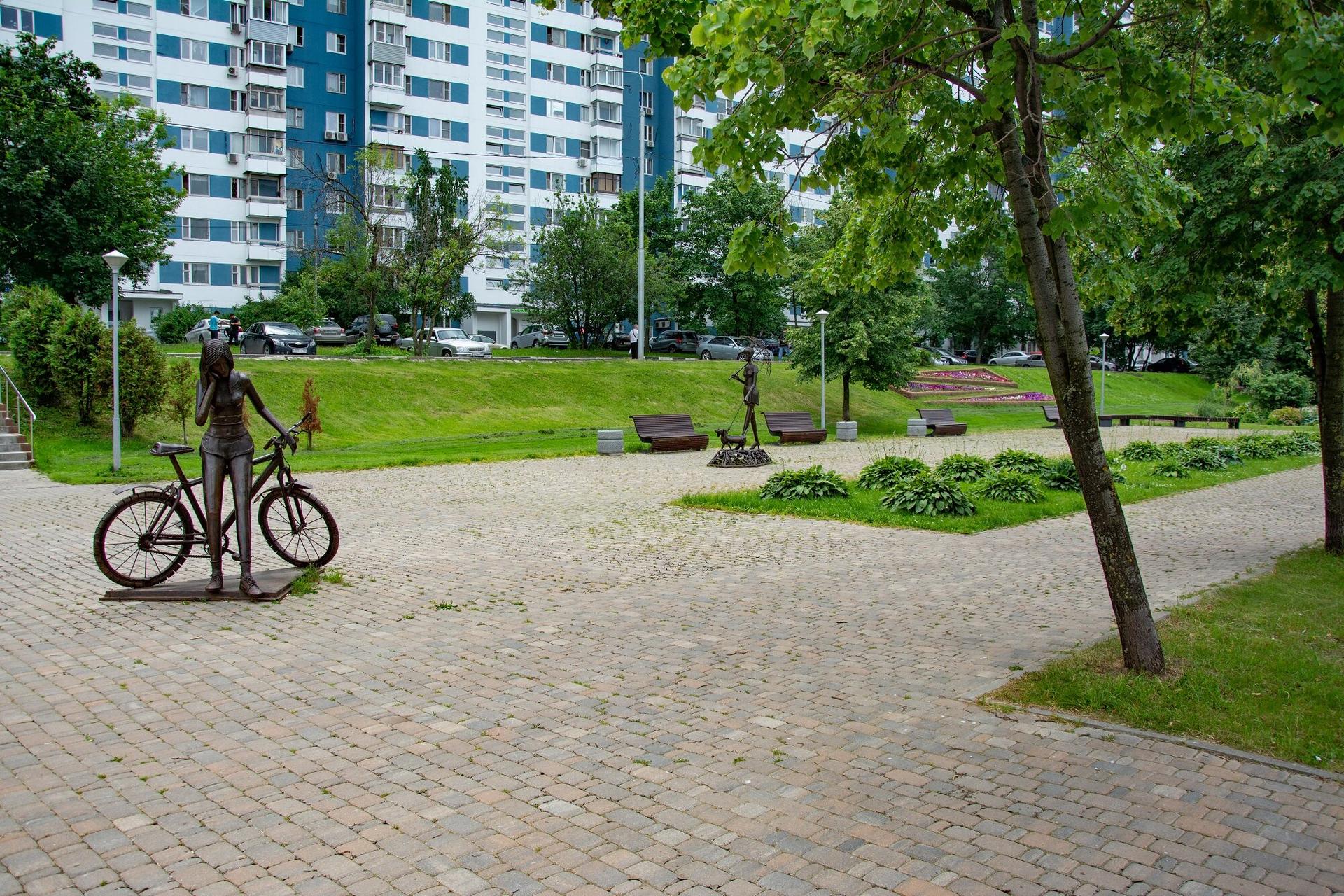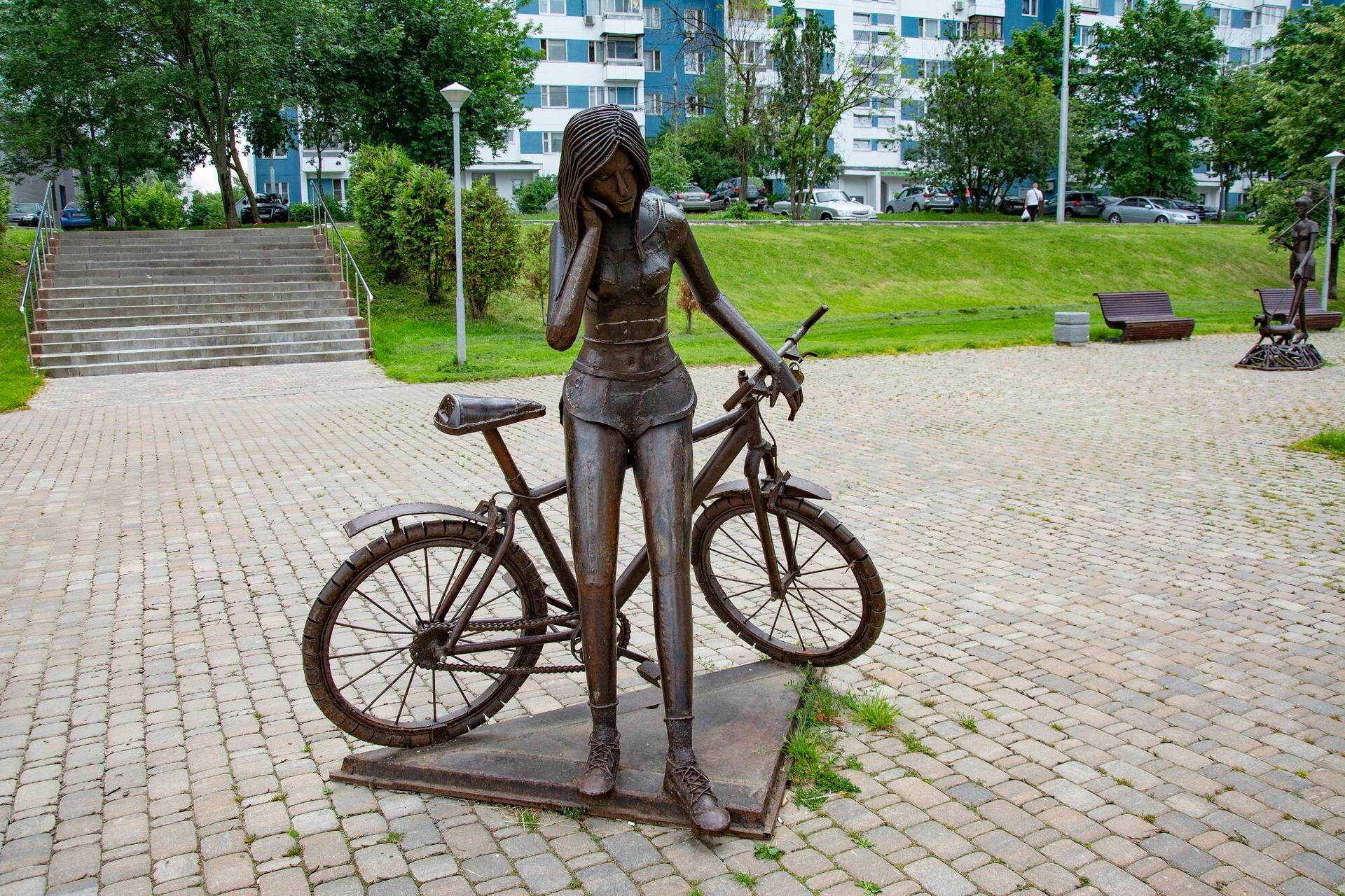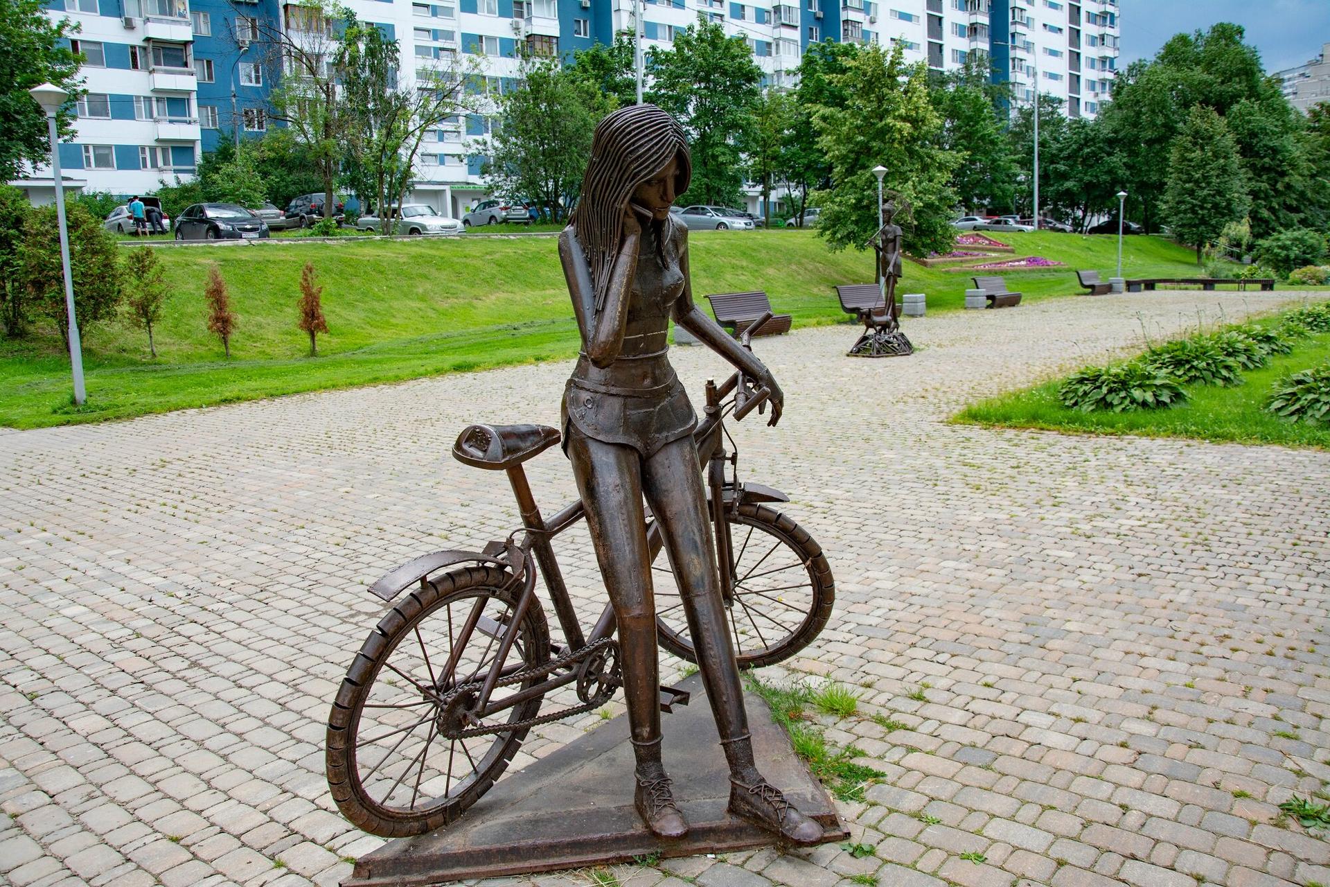 Скульптура «Фотограф» представляет собой девушку со штативом и фотокамерой в руках. Как отмечал сам мастер в одном из интервью, в создании этой композиции он использовал настоящий штатив от старой фотокамеры. Скульптура «С телефоном» изображает велосипедистку, которая увлеченно разговаривает по телефону. На руле велосипеда можно заметить замки, которые сюда вешают молодожены. Скульптура «Дама с собачкой» – это девушка с таксой на поводке в левой руке и зонтиком – в правой. Андрей Асерьянц создал интересные и забавные образы и отметил, что городу нужны смешные скульптуры.