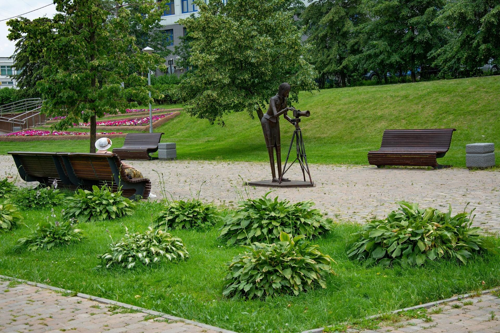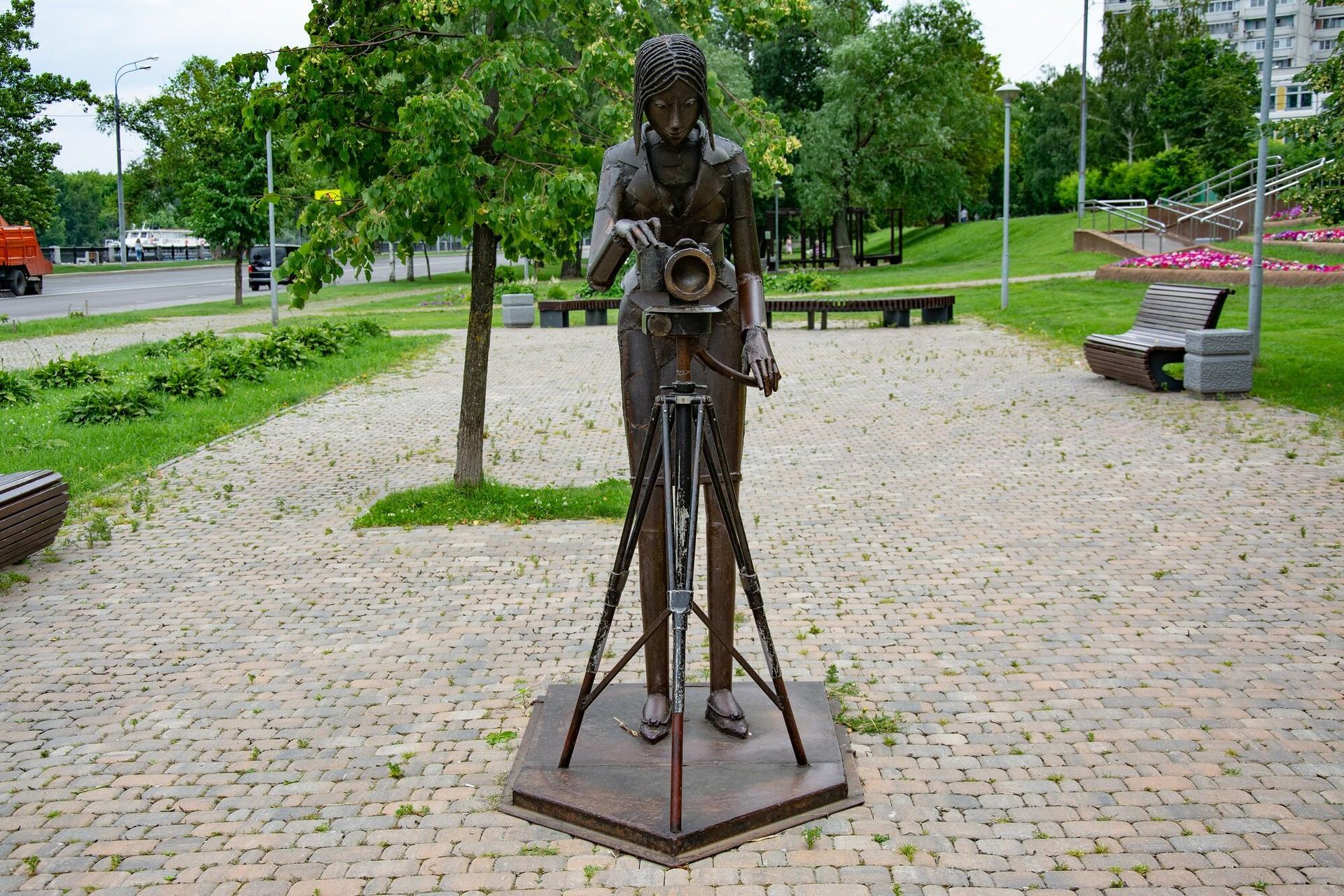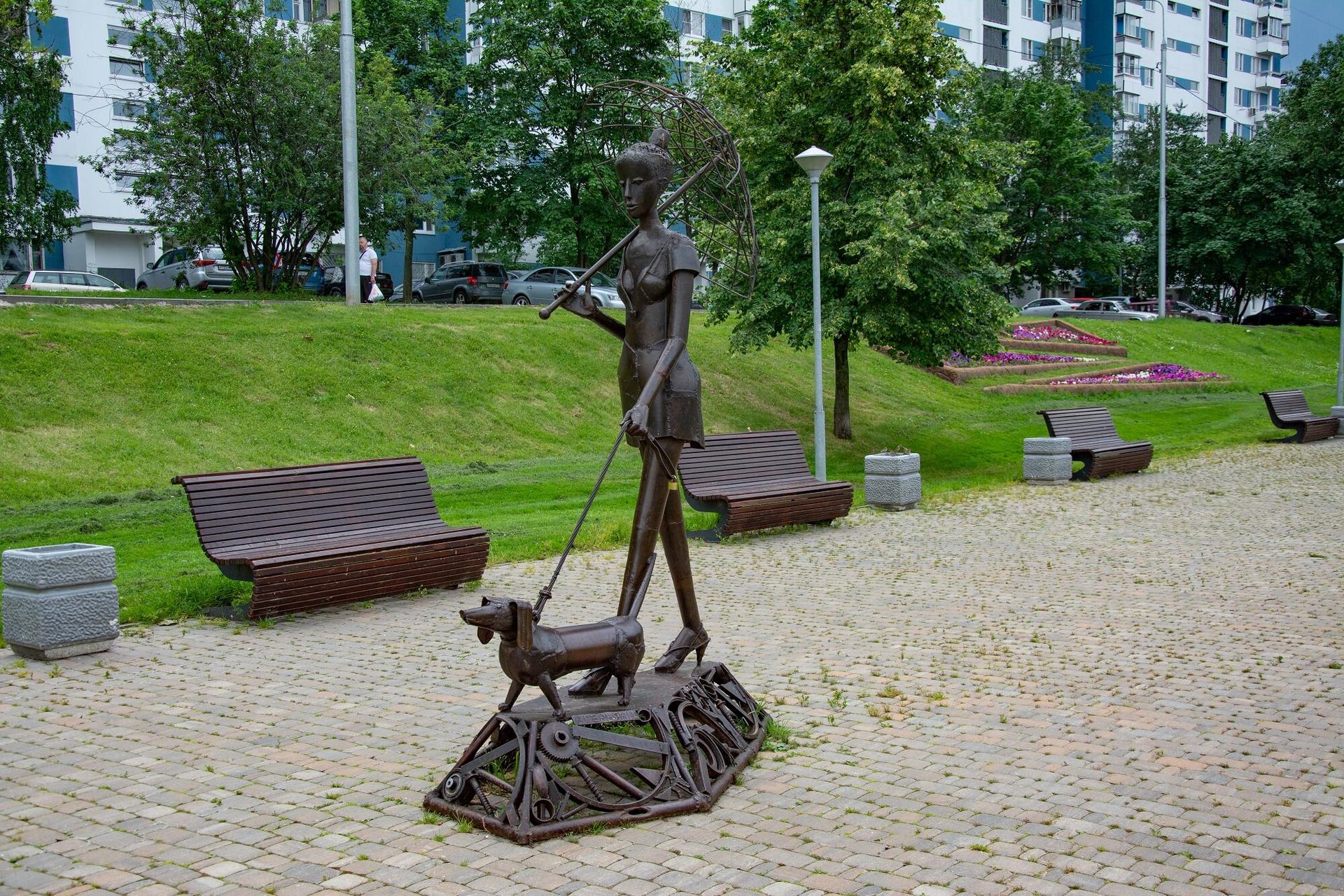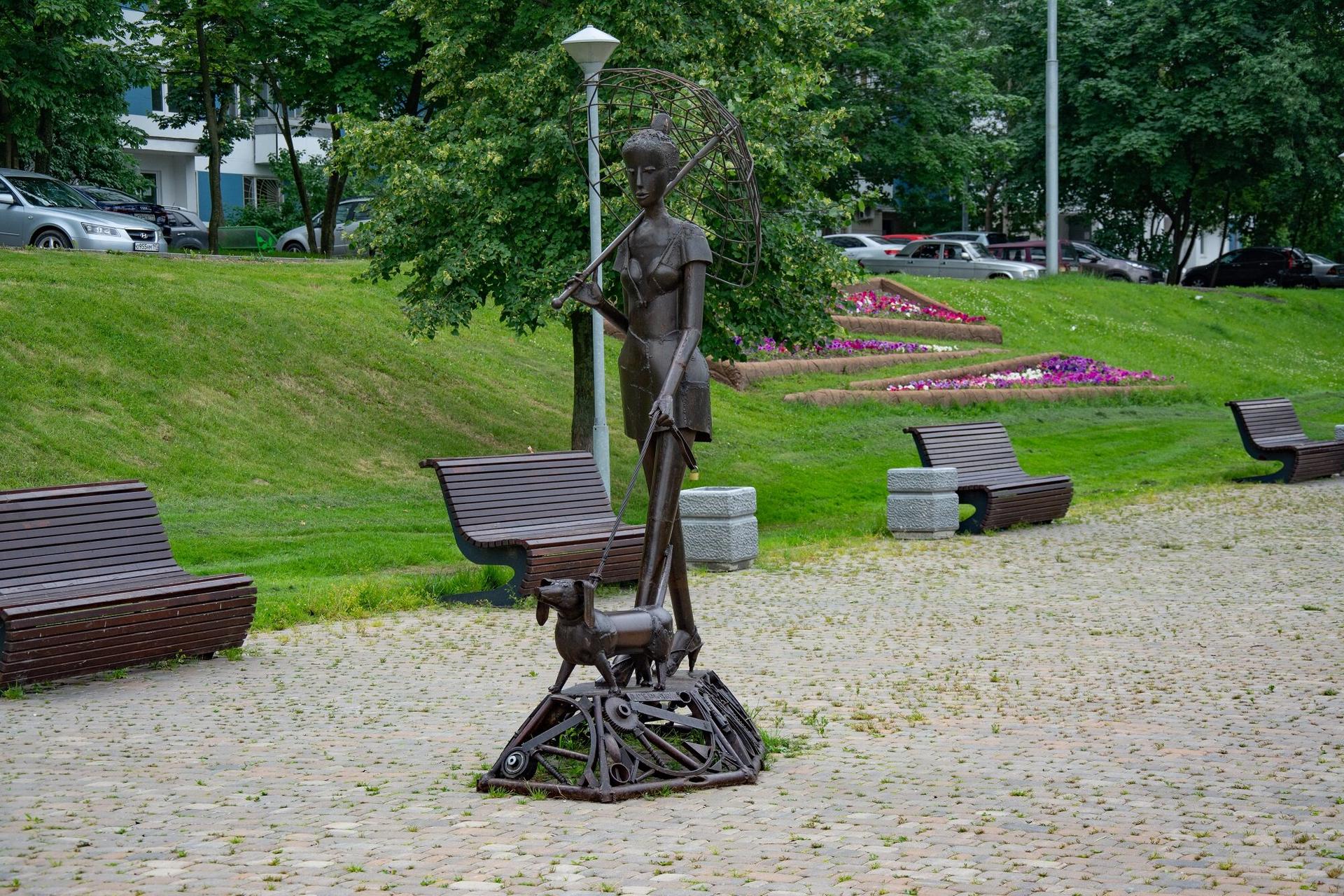 Скульптура «Фотограф» представляет собой девушку со штативом и фотокамерой в руках. Как отмечал сам мастер в одном из интервью, в создании этой композиции он использовал настоящий штатив от старой фотокамеры. Скульптура «С телефоном» изображает велосипедистку, которая увлеченно разговаривает по телефону. На руле велосипеда можно заметить замки, которые сюда вешают молодожены. Скульптура «Дама с собачкой» – это девушка с таксой на поводке в левой руке и зонтиком – в правой. Андрей Асерьянц создал интересные и забавные образы и отметил, что городу нужны смешные скульптуры.
