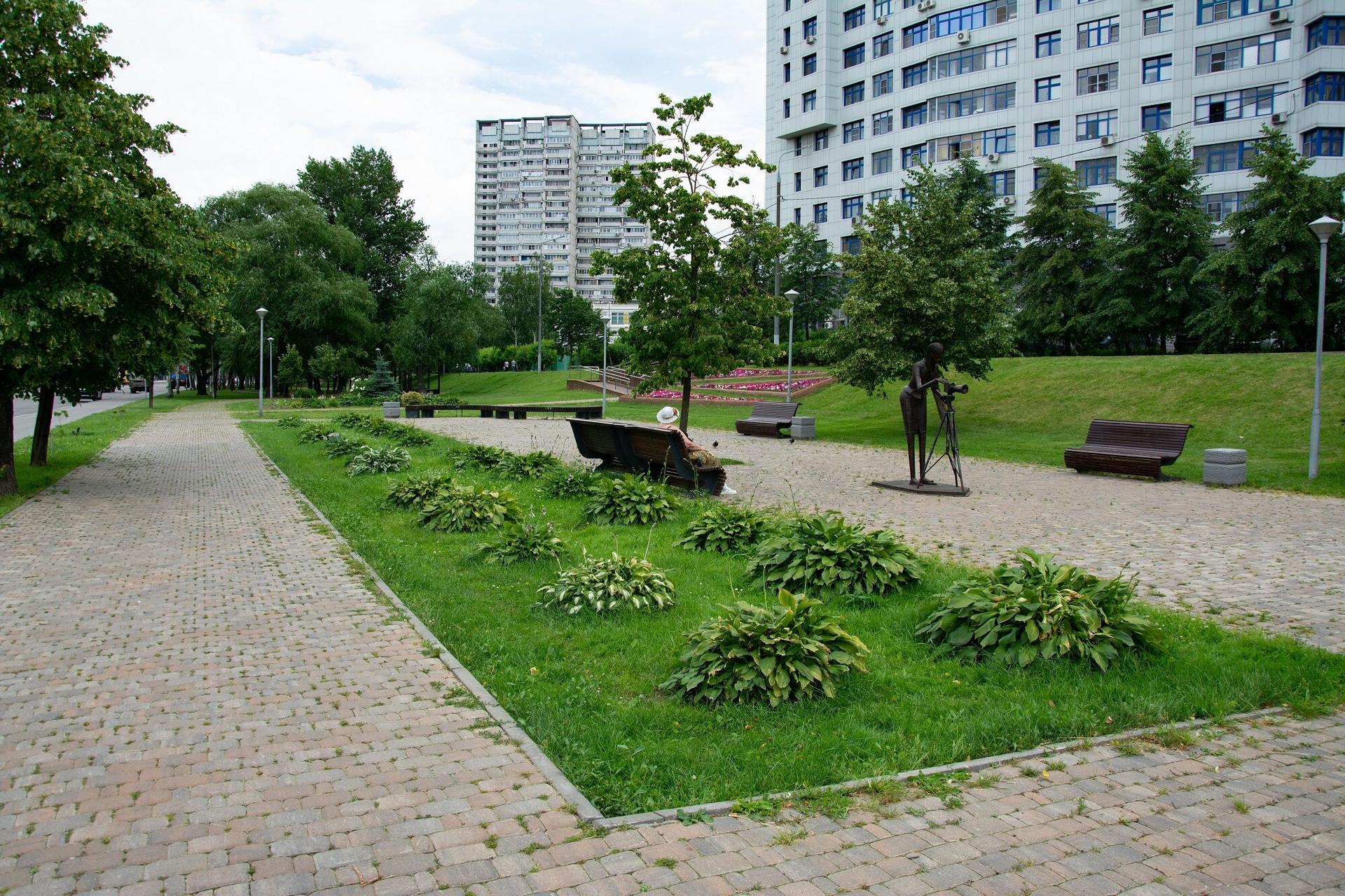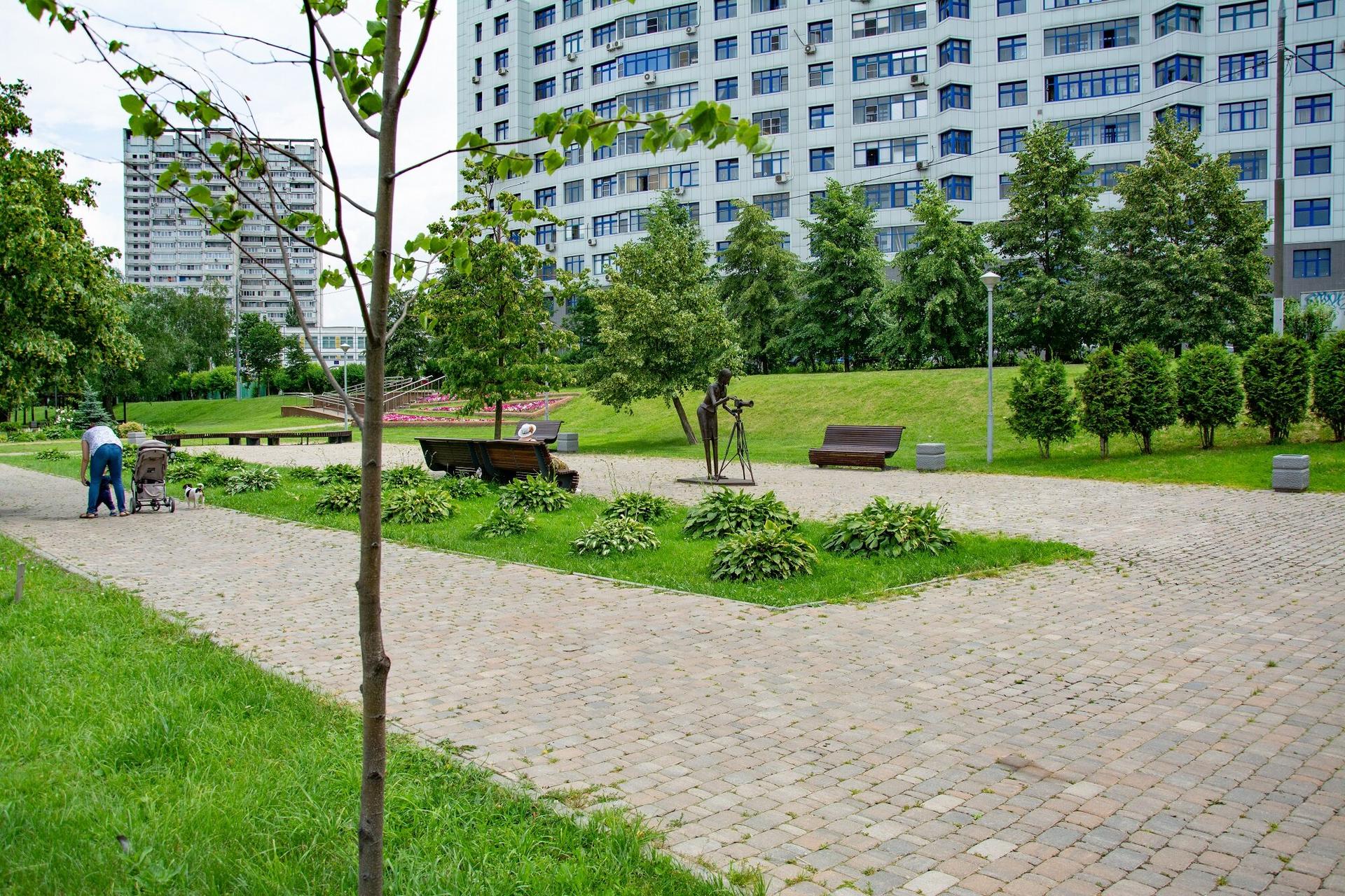 На Нагатинской набережной у дома 54 и 56А находится небольшой благоустроенный сквер. Здесь расположены три скульптуры из металлолома – «Фотограф», «С телефоном» и «Дама с собачкой». Автором этих работ стал художник и мастер кинетической скульптуры в стиле стимпанк Андрей Асерьянц. В своих работах он использует разнообразные железные детали: старые баллоны, трубы, цепи, подшипники, болты и прочие подобные материалы.