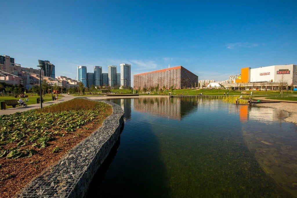 Во-вторых, на Ходынском поле появился большой искусственный пруд с островком, но выглядит он настолько естественно, что его уже облюбовали несколько семей уток-огарей. Вокруг пруда можно прогуляться по набережной и мостикам, полюбоваться закатом и «почти дикими» камышами, а также спуститься к воде – чтобы освежить ноги в специальной зоне мелководья. На склонах зеленых холмов расставлены шезлонги, так что теперь в парке «Ходынское поле» получится также и позагорать у воды.