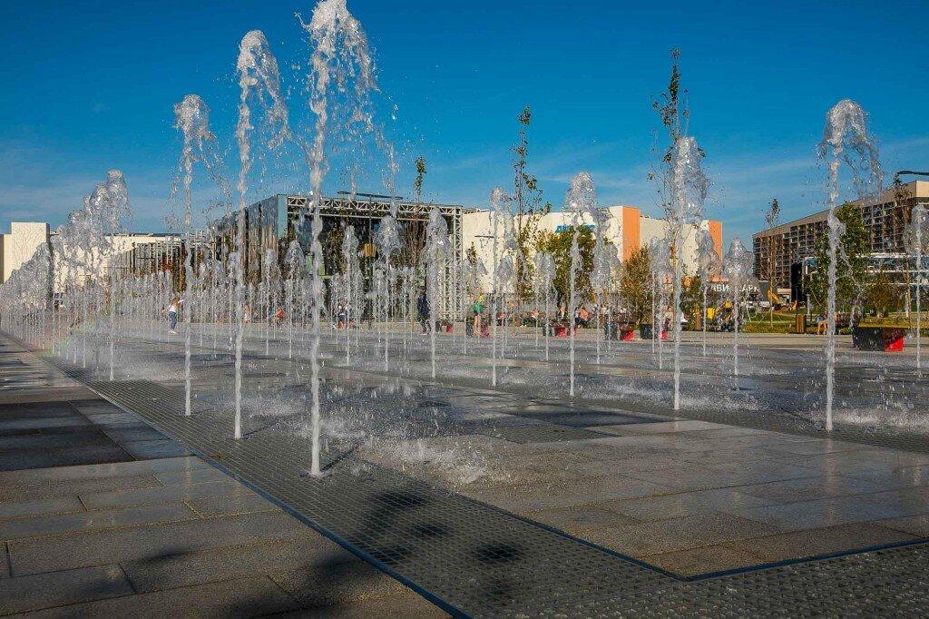 Чтобы не разбирать мощные бетонные плиты на месте бывшей взлётно-посадочной полосы, прямо поверх нее проложили центральный променад с сухим фонтаном из 254 струй и павильонами с зеркальными фасадами. Это – зона «В»: здесь можно посидеть в кафе, а затем арендовать велосипед и прокатится по велодорожке вокруг всего парка. Ребенка на это время можно «отдать» позаниматься чем-нибудь интересным в детском клубе или попрыгать в батутном центре.