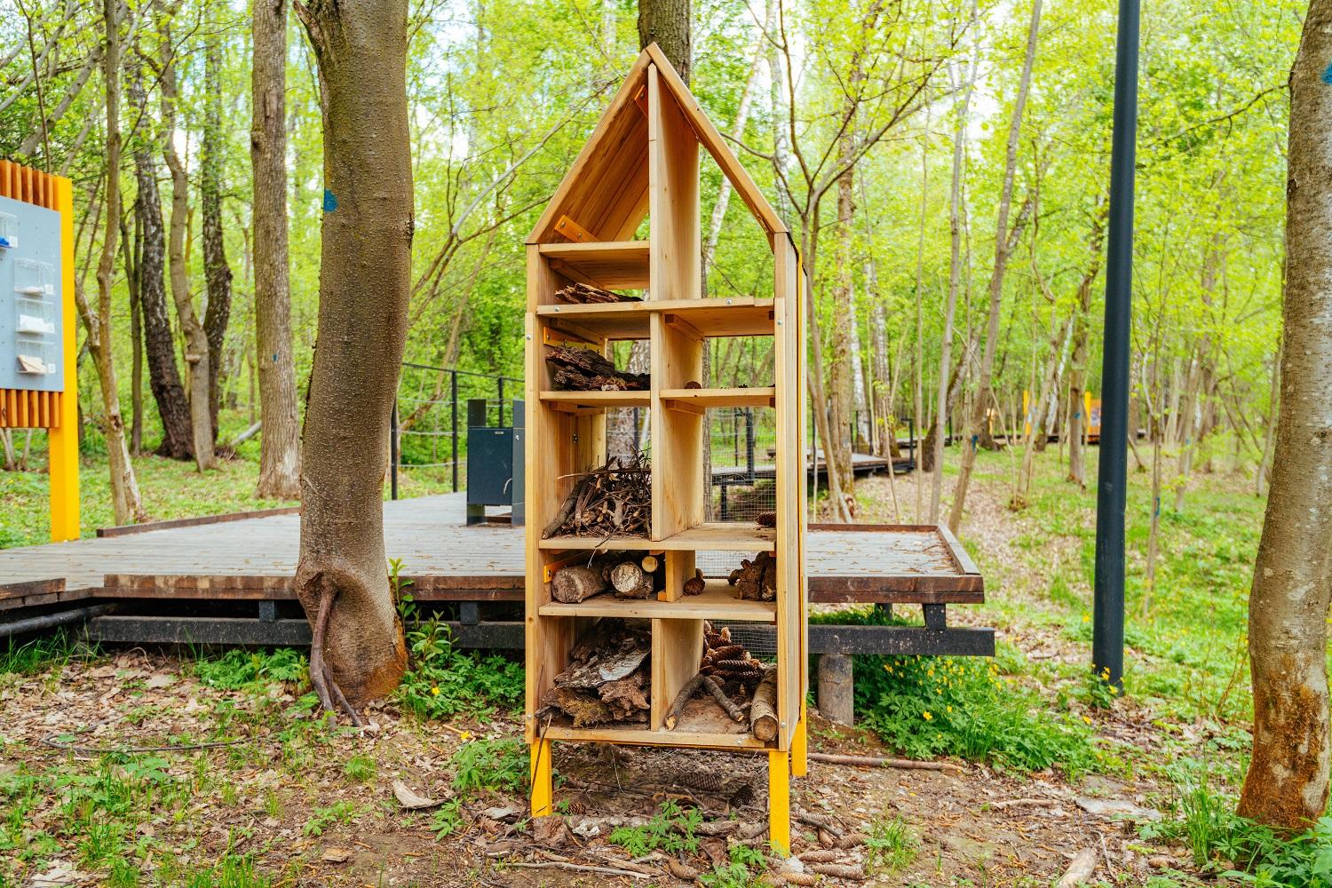В парке комфортно насекомым и птицам. Для одних здесь предусмотрены специальные домики с веточками, еловыми шишками и бревнышками, а для вторых – многочисленные кормушки. Парк «Марьино» – один из немногих, где встречаются подобные гостиницы для букашек.