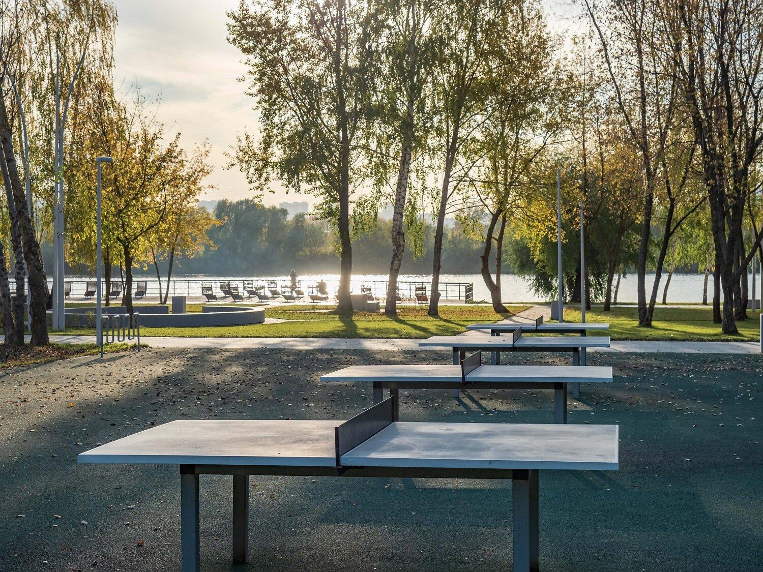 Всего в парке обустроено 8 игровых пространств для детей. Есть и спортивные зоны: воркаут, столы для пинг-понга, волейбольная площадка, уличные тренажеры. А еще можно прийти в парк с питомцем и отпустить его побегать на огороженной площадке для выгула собак.