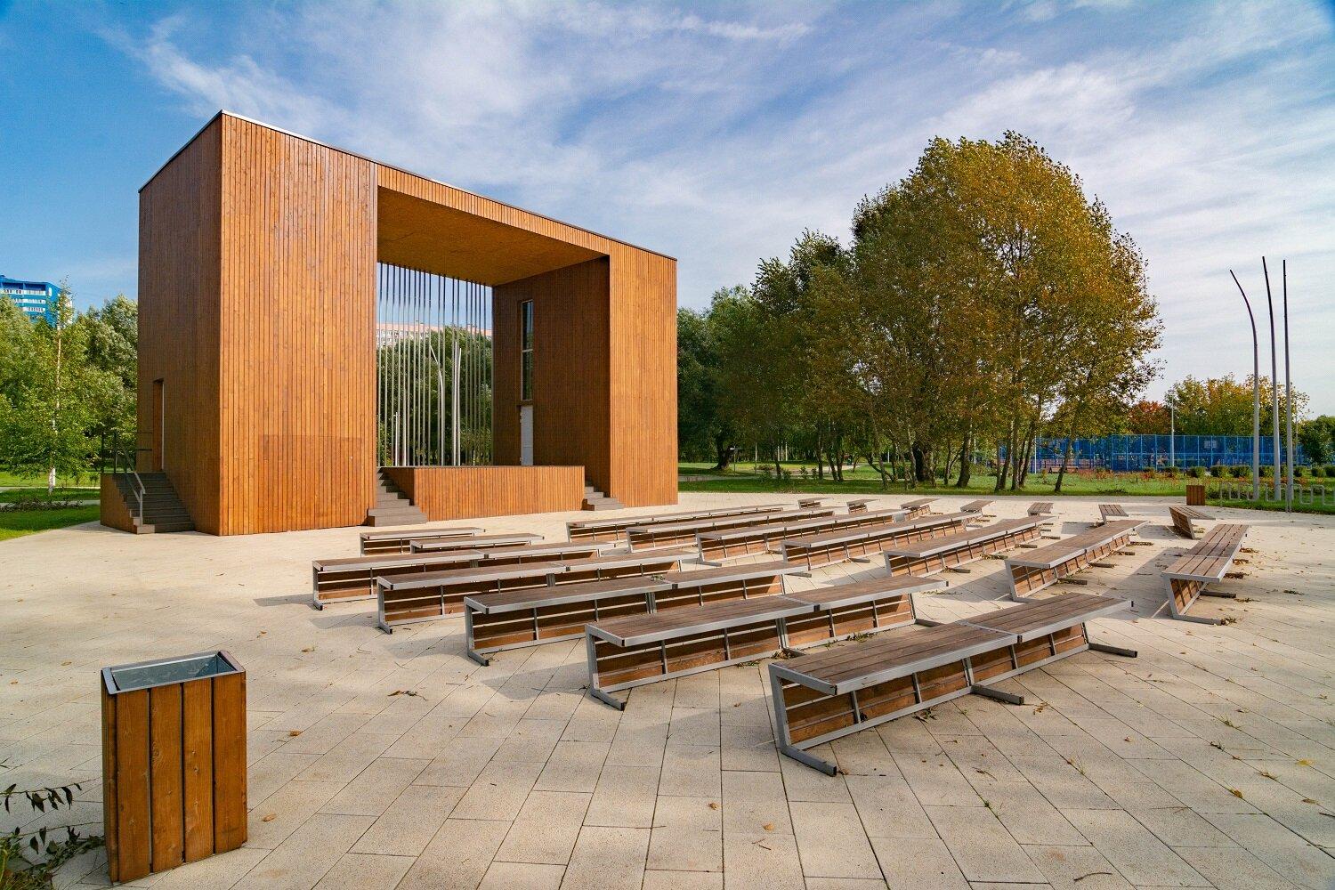 Парк на набережной Москвы-реки в Капотне протянулся по западной границе района. Территория, которая ранее представляла собой заболоченный и пустынный берег реки, превратилась в уникальное общественное пространство с многочисленными зонами для прогулок и отдыха.