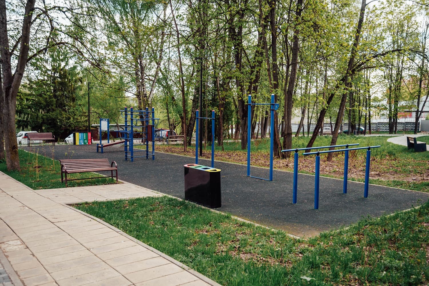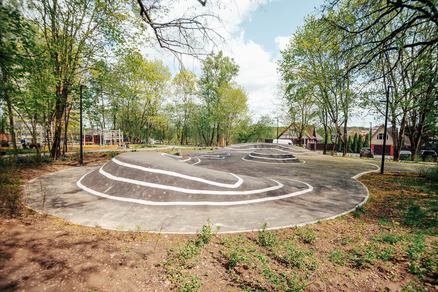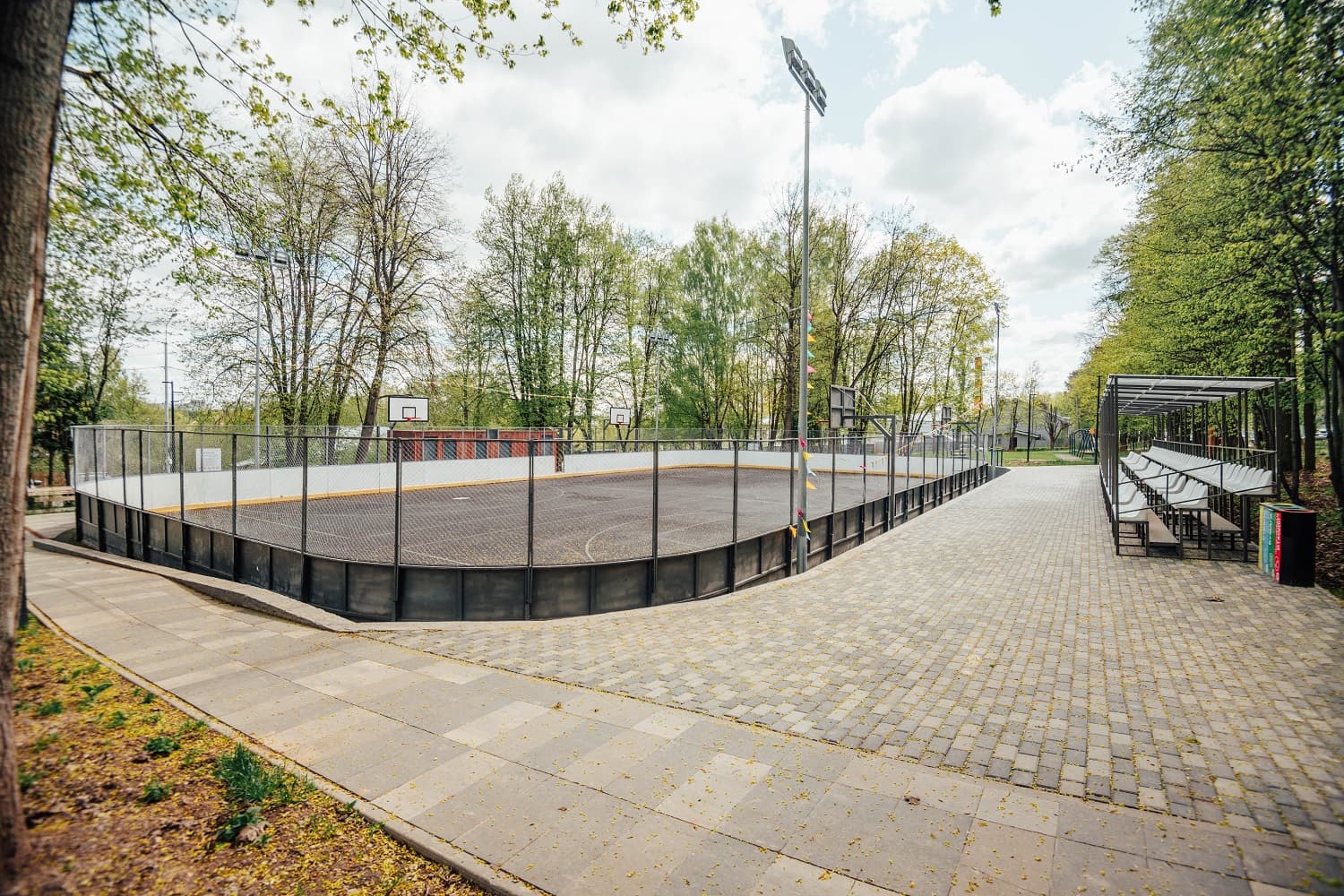 Парк небольшой, но функциональный. Для спортсменов оборудовано всесезонное поле с трибунами, в котором можно играть в футбол, флорбол и хоккей, а также тренажеры для воркаута. Еще одной «спортивной» достопримечательностью стал памп-трек для детей и экстремалов постарше.