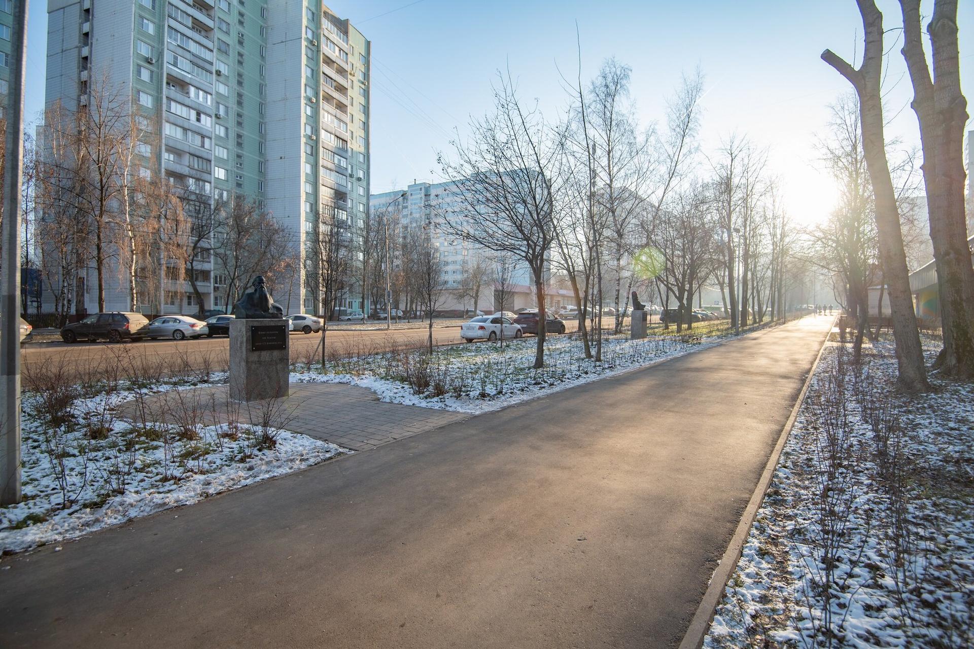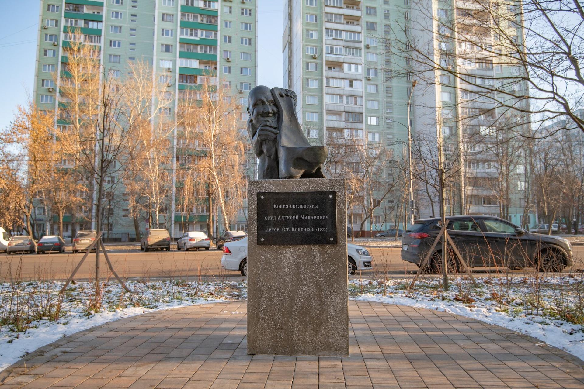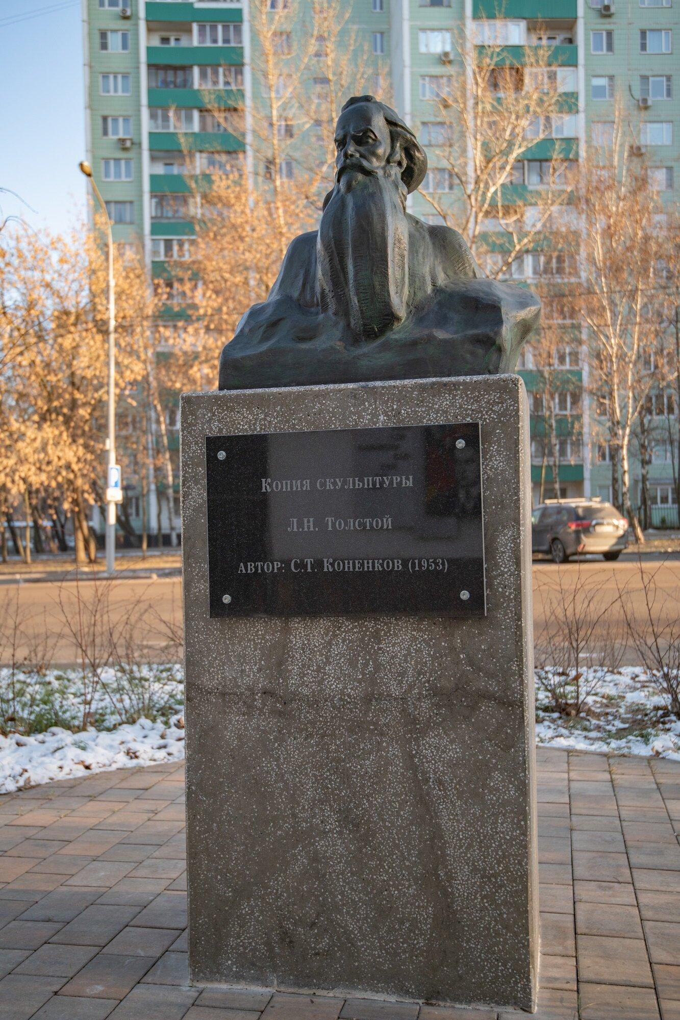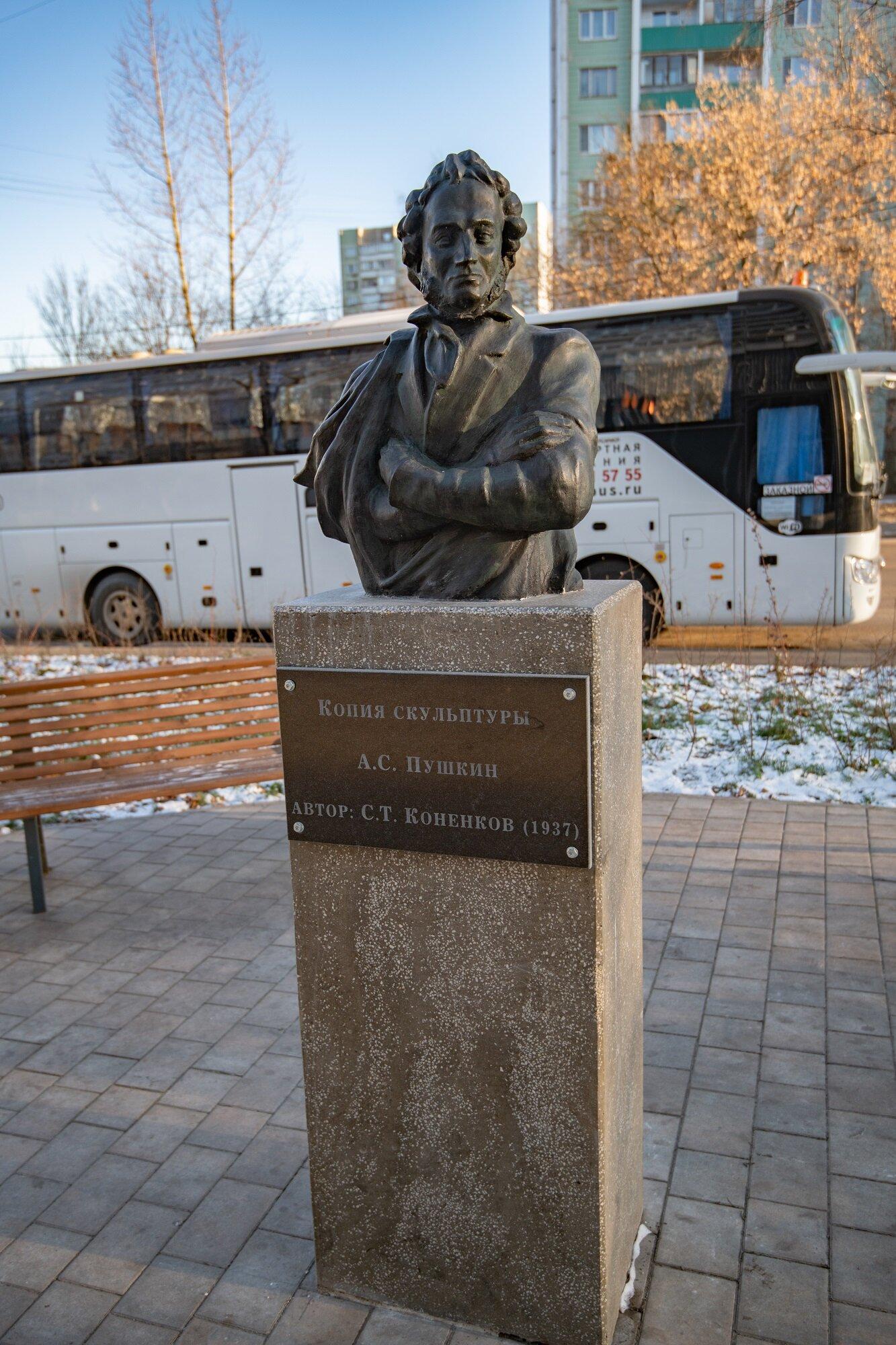 На пересечении улиц Коненкова и Лескова еще до появления парка был установлен памятный бюст Сергея Коненкова – копия с его скульптурного автопортрета.