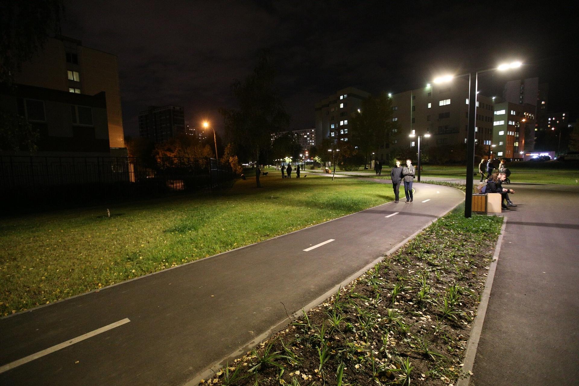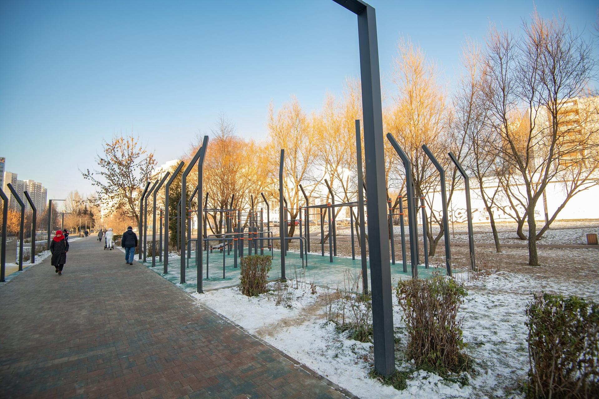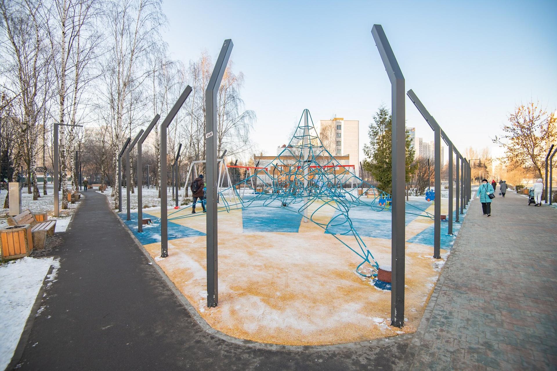 Для активного отдыха в парке проложили велодорожку и обустроили воркаут-зону, окруженную фонарями, что позволяет заниматься здесь спортом и в темное время суток. А для владельцев собак на территории появилась площадка для выгула со встроенной в ограждение подсветкой и современным оборудованием для дрессировки.