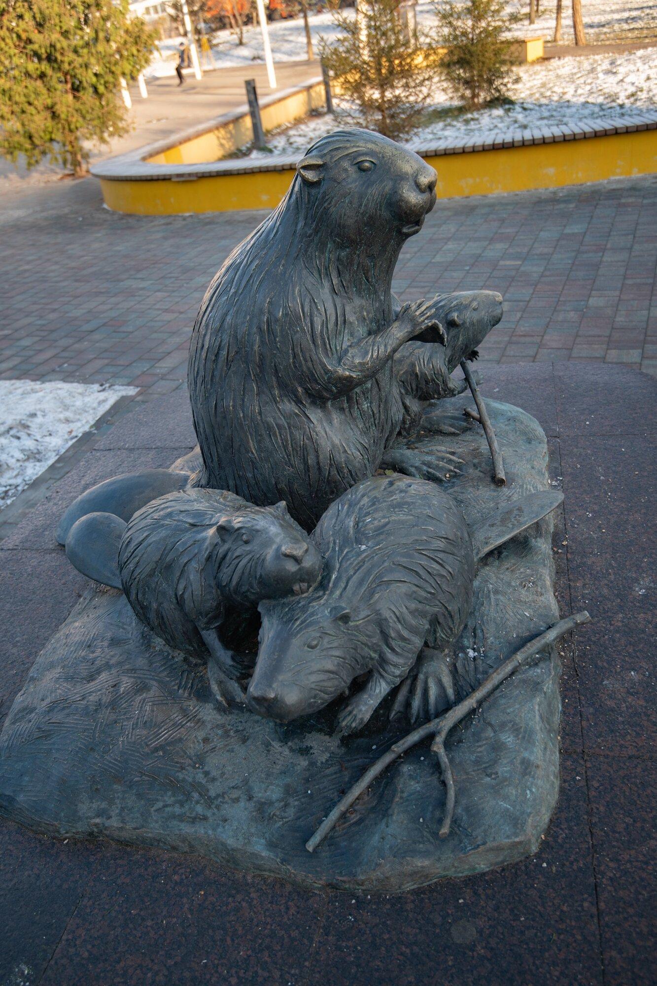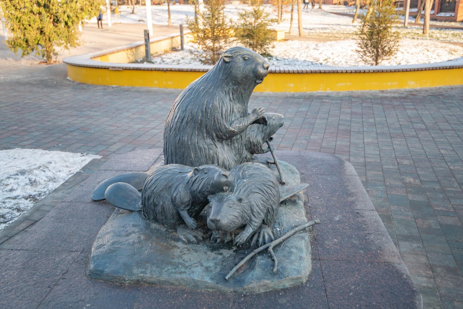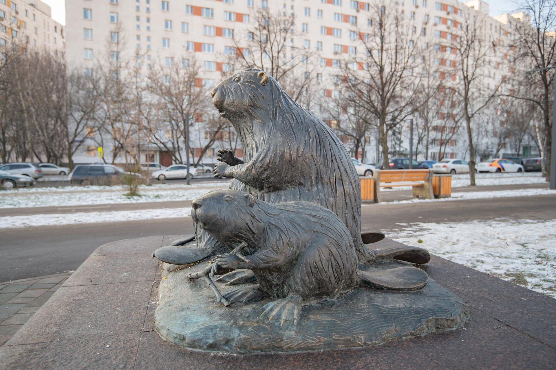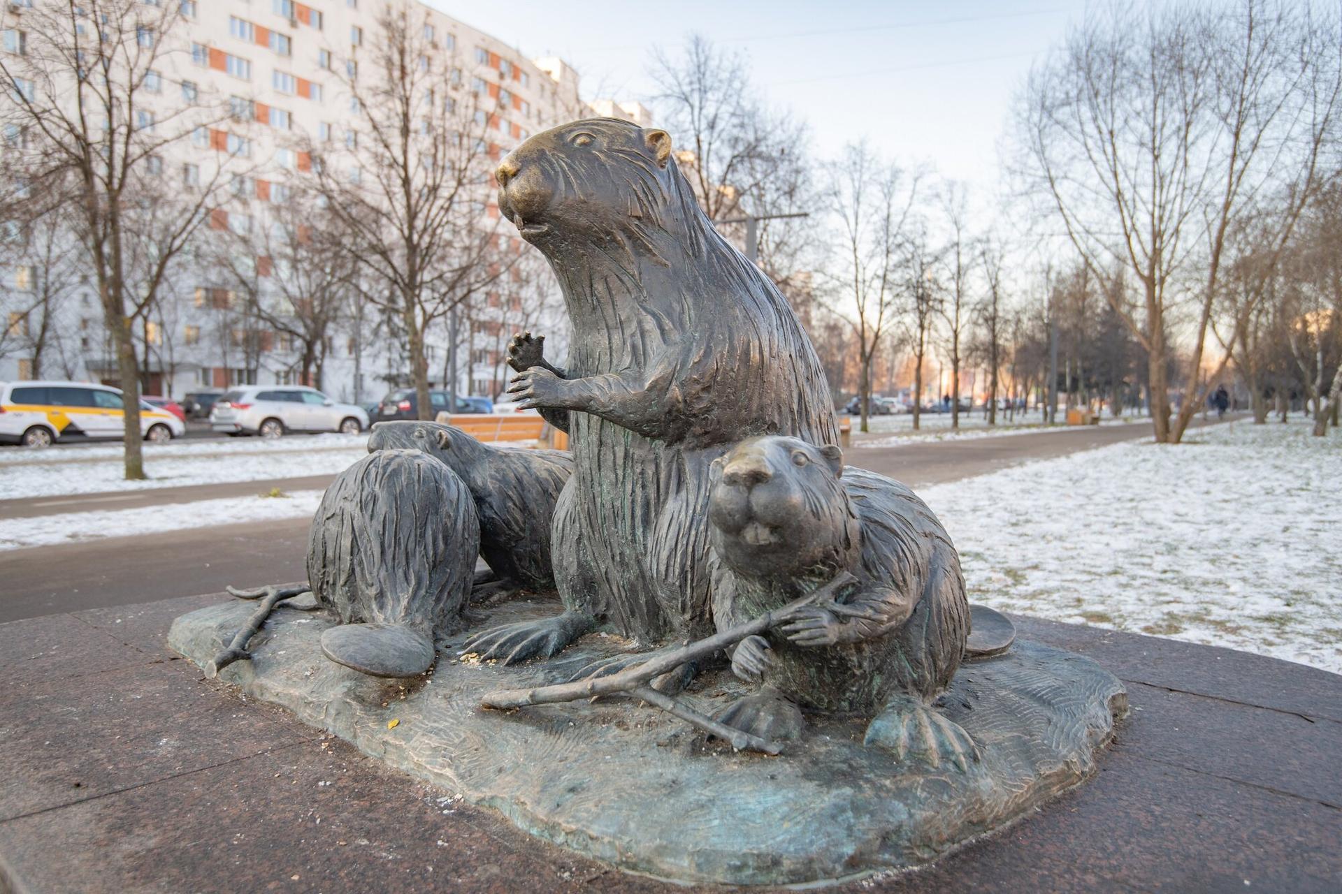 Рядом с круговыми качелями была установлена скульптурная композиция «Семейство бобров», изображающая маму бобриху и трех ее детенышей. Бобер является символом района Бибирево: он изображен на его гербе и флаге.