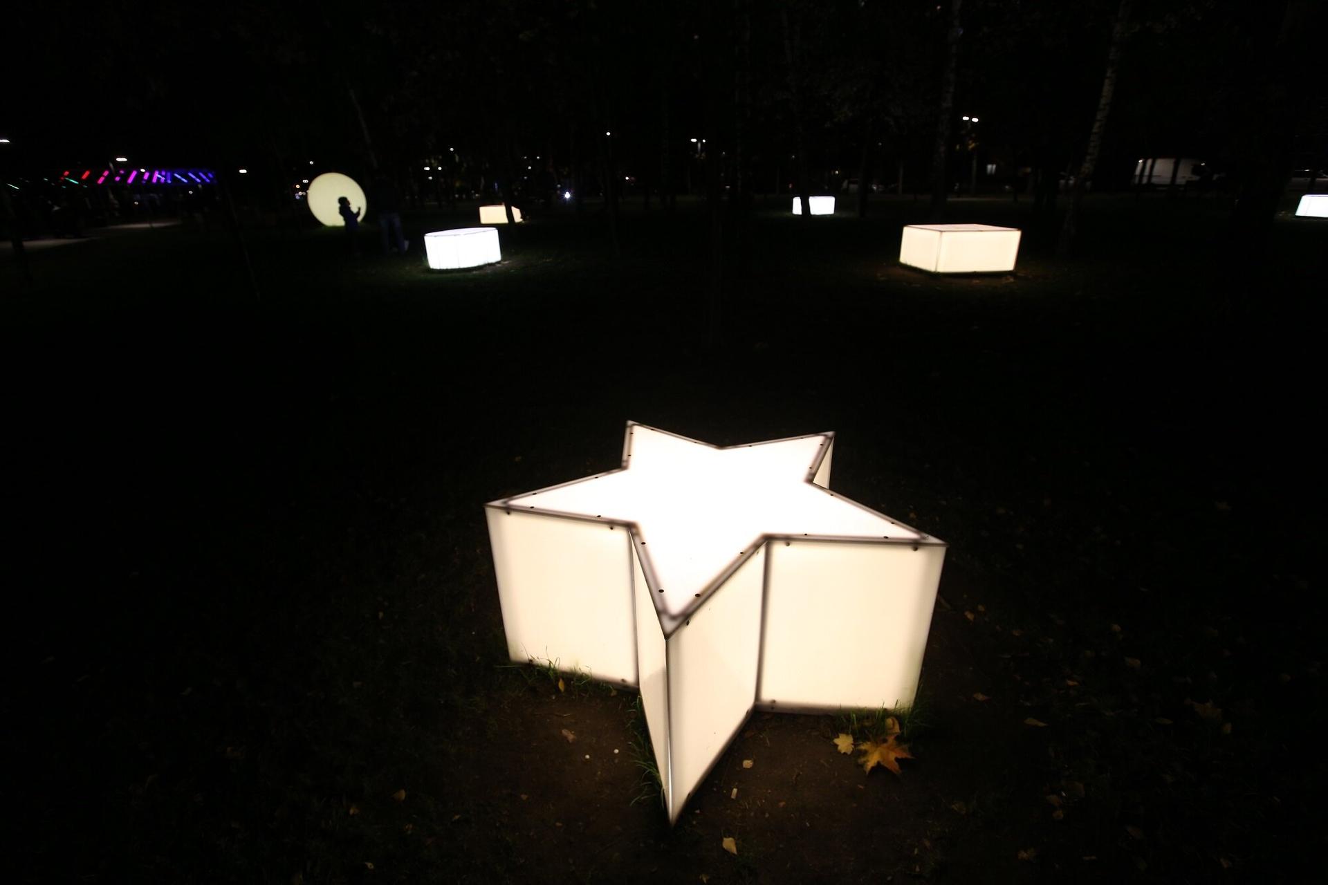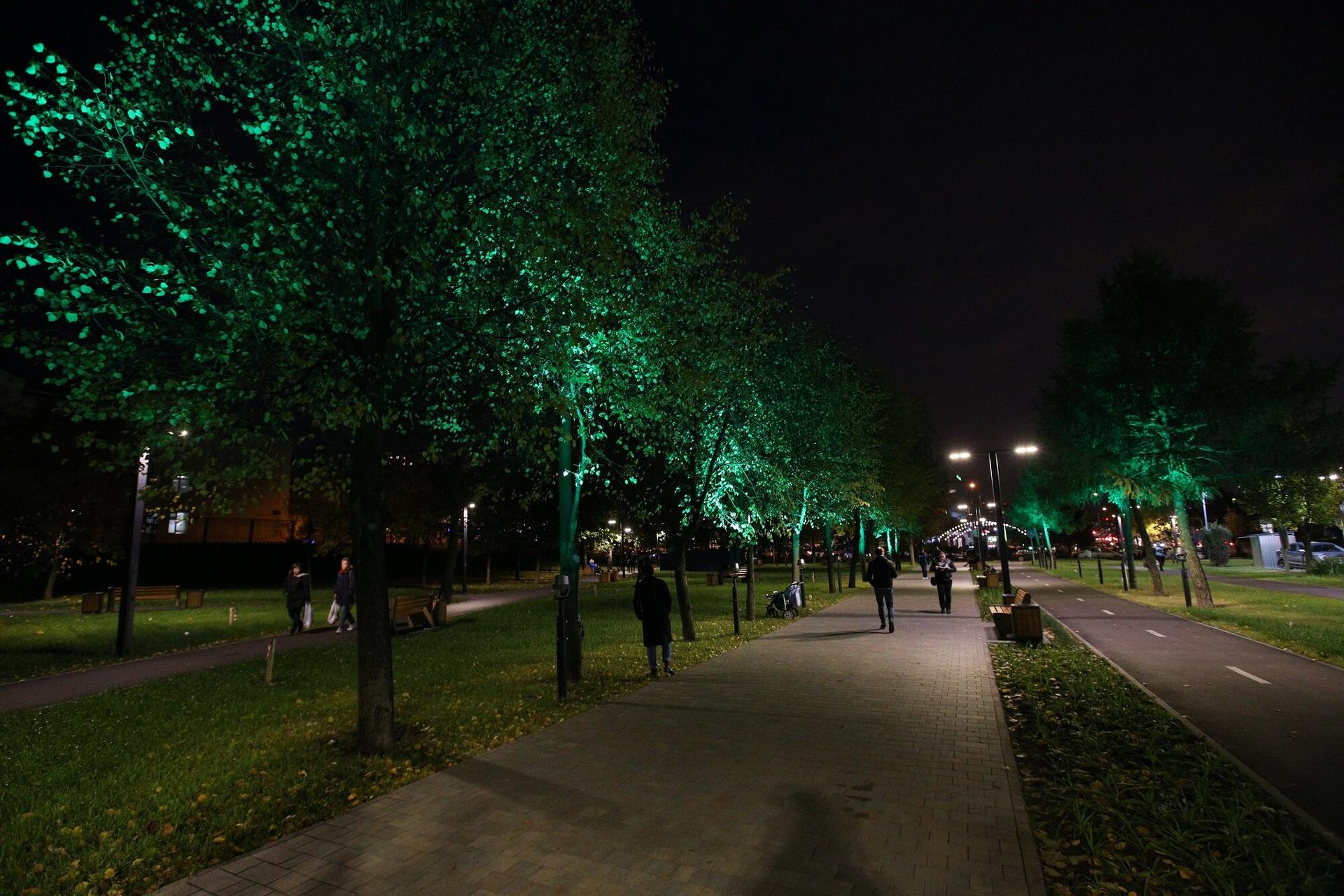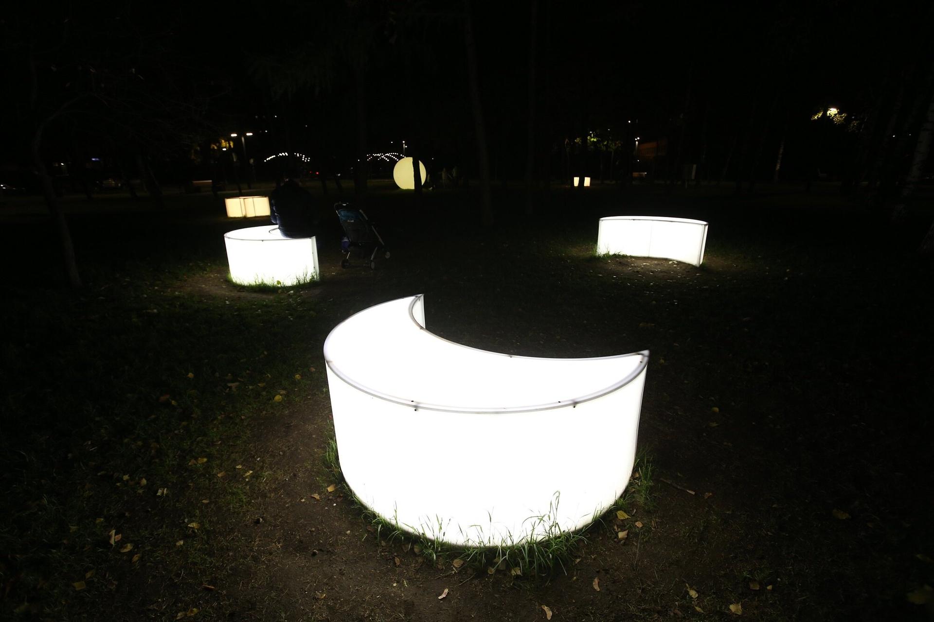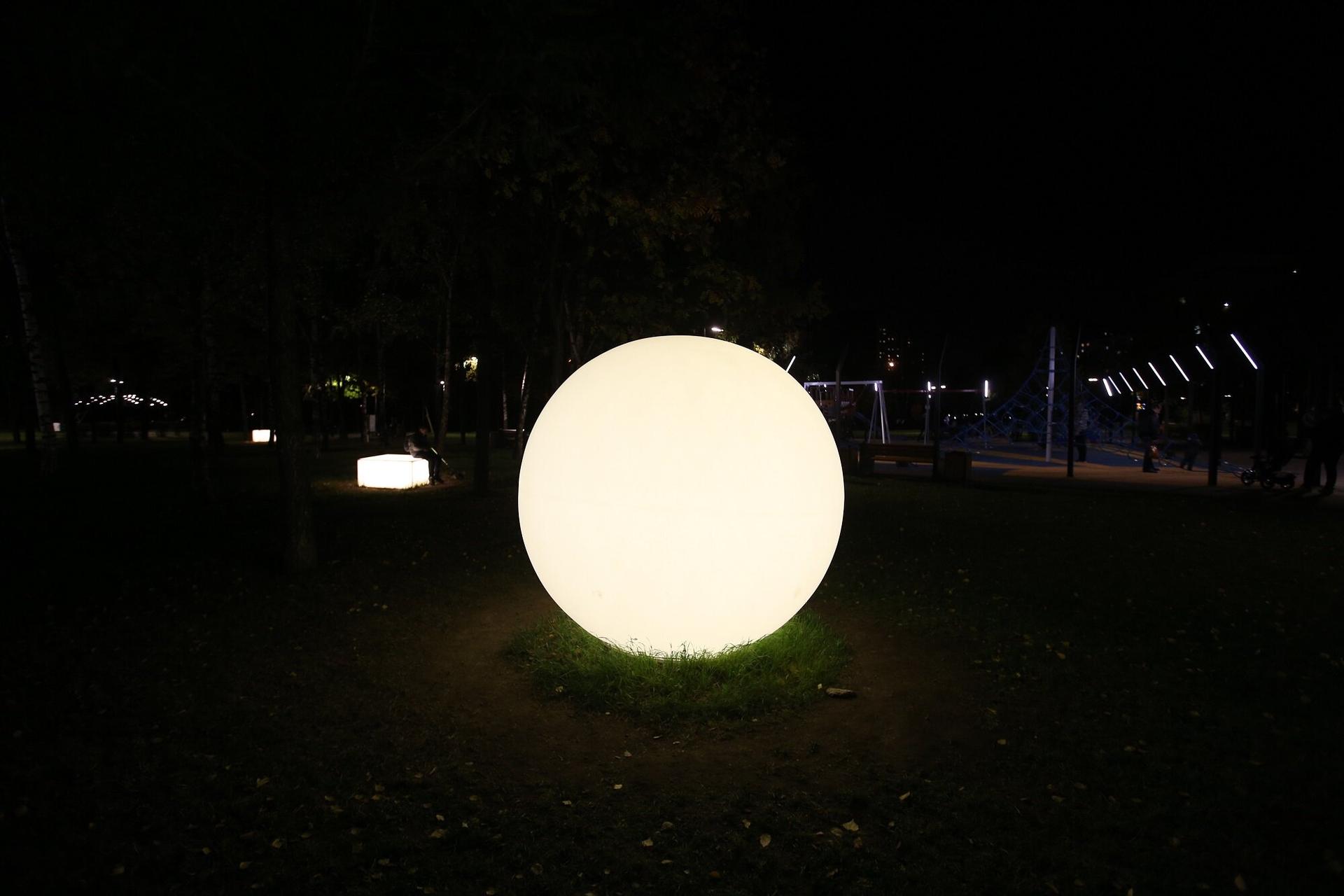 Лейтмотивом парка стала уникальная система освещения. Всего здесь установили более 150 новых фонарей и боллардов. Входные группы парка выполнены в виде галерей из арок в стиле ретро с круглыми светильниками. Фонари вдоль одной из прогулочных зон и велодорожек – светодинамические, они меняют цвета от белого и красного до синего и зеленого. Одной из самых живописных зон парка Света стал «волшебный лес» – поляна со светильниками в форме звезд, месяцев и шаров, «раскиданных» между деревьями. Эти светильники также выполняют и функцию пуфов – на них можно присесть.