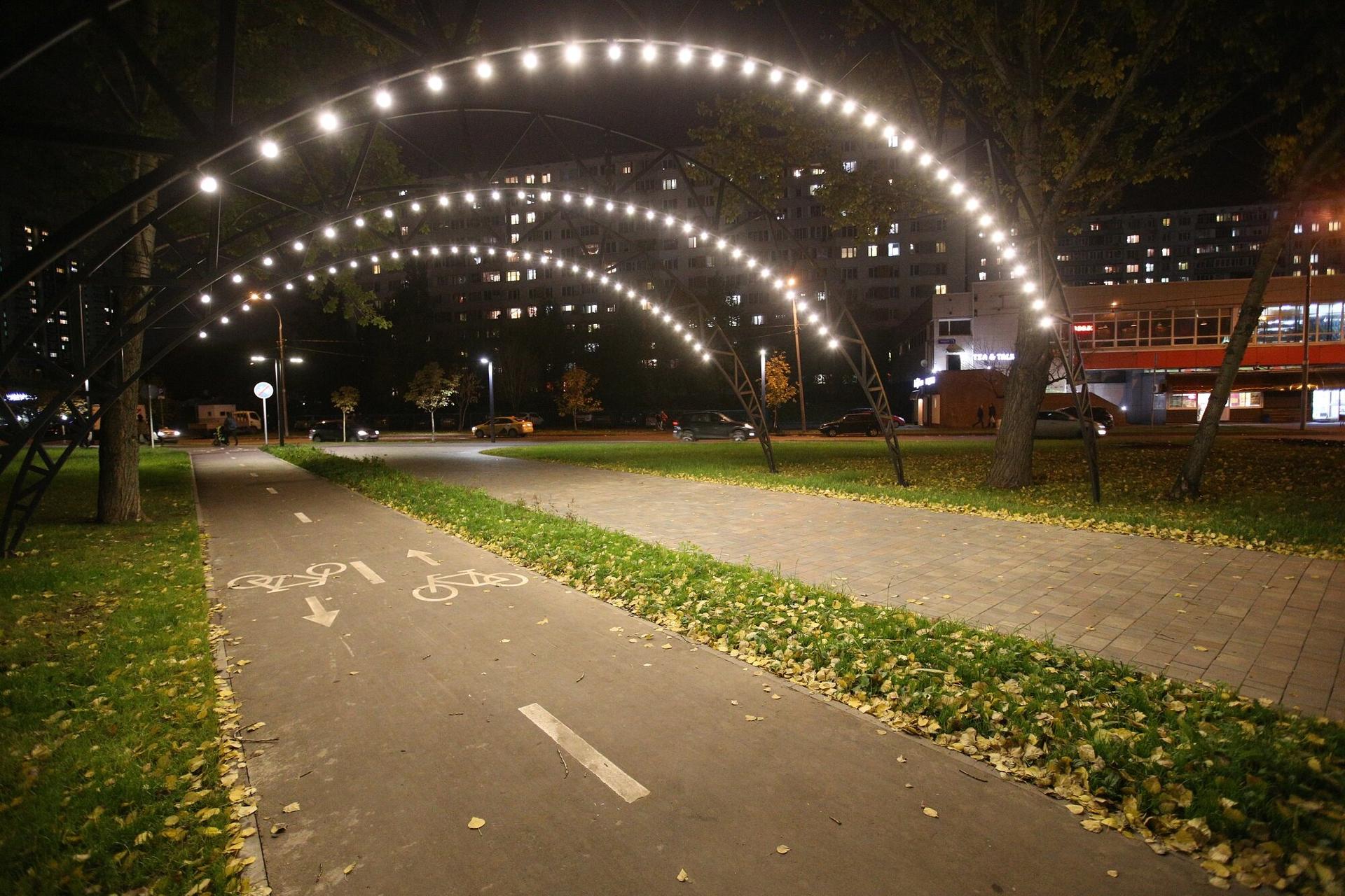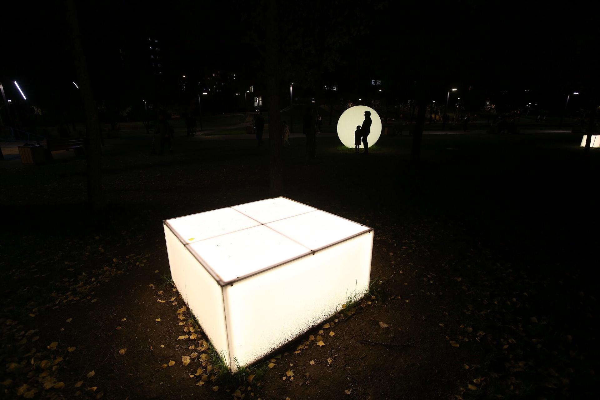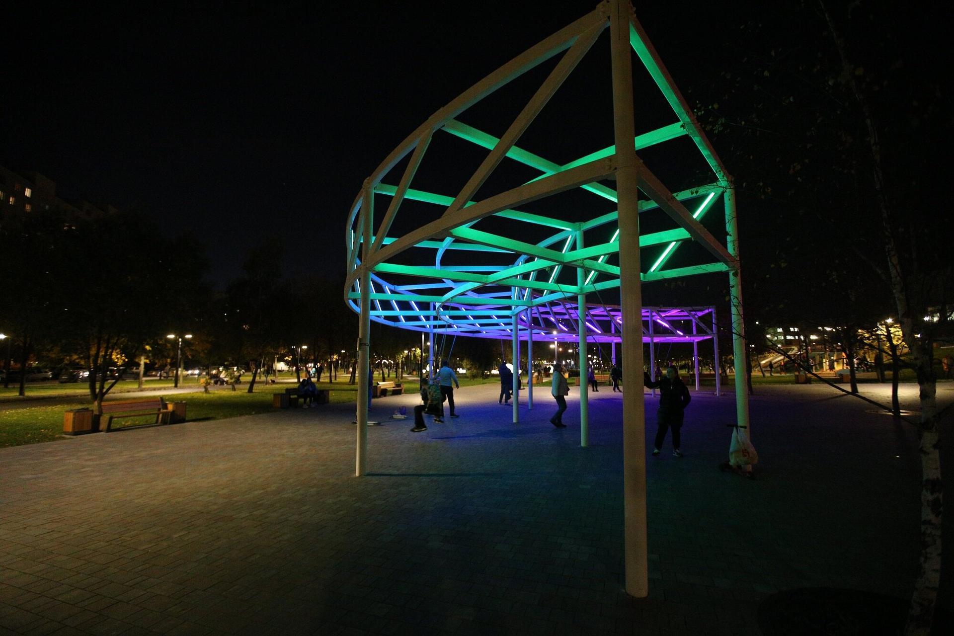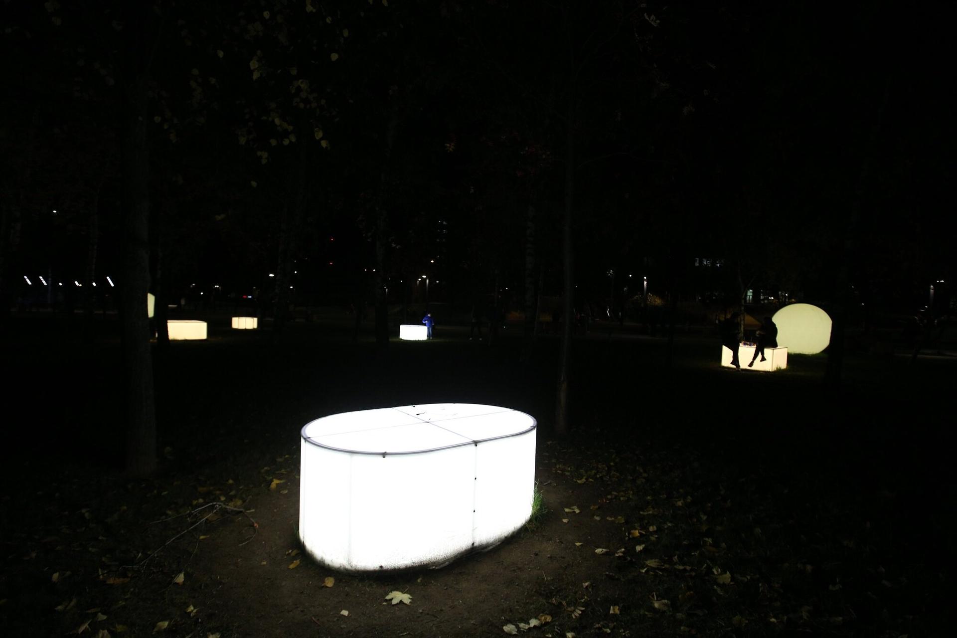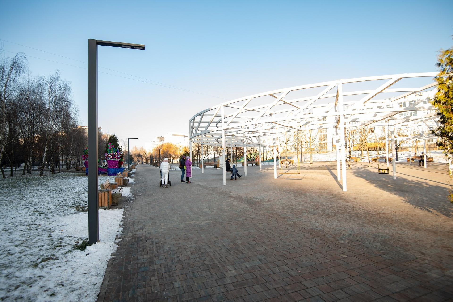 Лейтмотивом парка стала уникальная система освещения. Всего здесь установили более 150 новых фонарей и боллардов. Входные группы парка выполнены в виде галерей из арок в стиле ретро с круглыми светильниками. Фонари вдоль одной из прогулочных зон и велодорожек – светодинамические, они меняют цвета от белого и красного до синего и зеленого. Одной из самых живописных зон парка Света стал «волшебный лес» – поляна со светильниками в форме звезд, месяцев и шаров, «раскиданных» между деревьями. Эти светильники также выполняют и функцию пуфов – на них можно присесть.