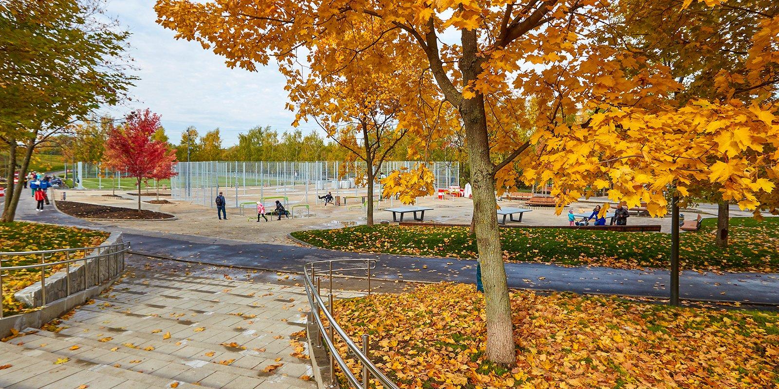 На территории площадью 14,7 гектара есть прогулочные дорожки, веломаршрут, места для отдыха и занятий спортом, детские игровые площадки.