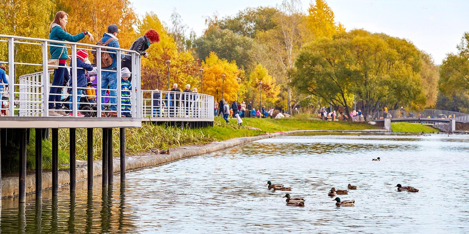 Парк в пойме реки Битцы подойдет и для любителей спокойного отдыха. Вдоль прудов сделали набережную. Длина прогулочного маршрута 1,5 километра. Для подхода к воде обустроены четыре деревянных настила с перилами и три ступенчатых спуска с местами для сидения.