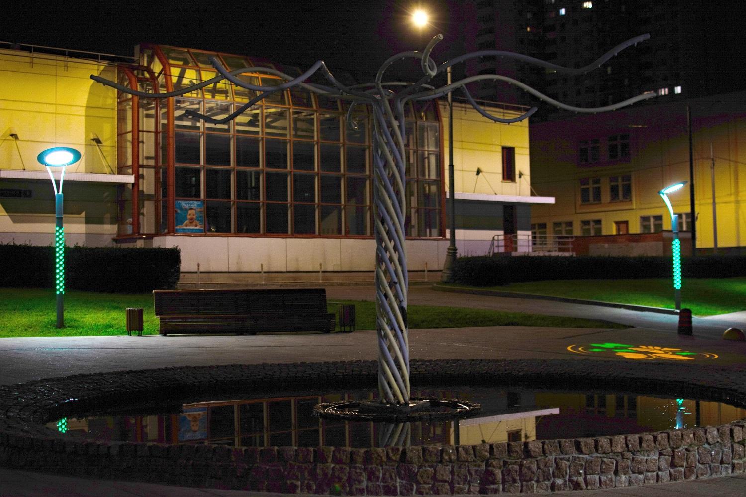 У дома 4 корпус 3 на улице Саморы Машела находится небольшая площадь с фонтаном в виде дерева с раскинутыми ветвями – его включают в теплое время года.