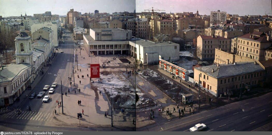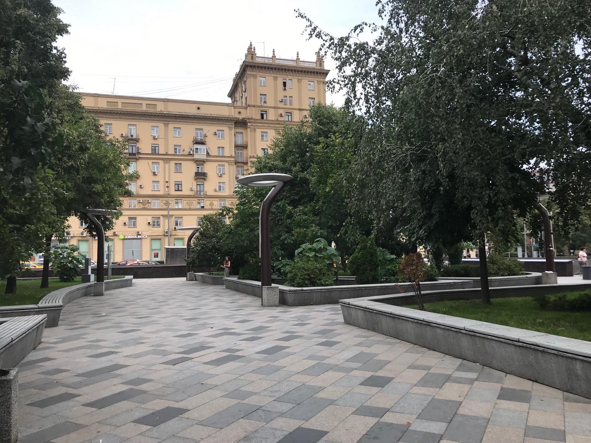 Эта уютная площадь имеет необычную историю. Она была образована в 1970-х годах, а к 1977 году тут возвели кинотеатр «Новороссийск» (сегодня – здание ЦДП).