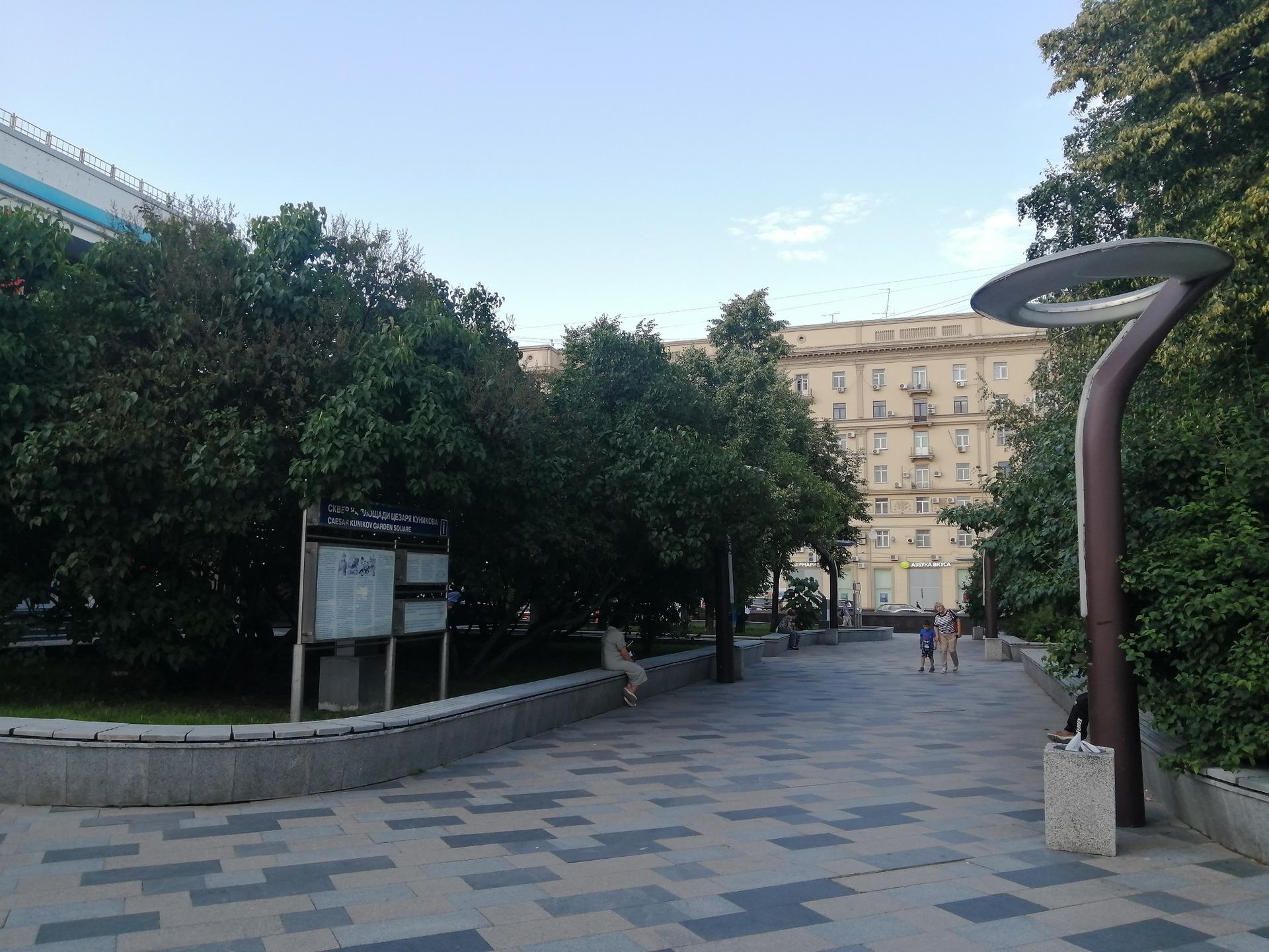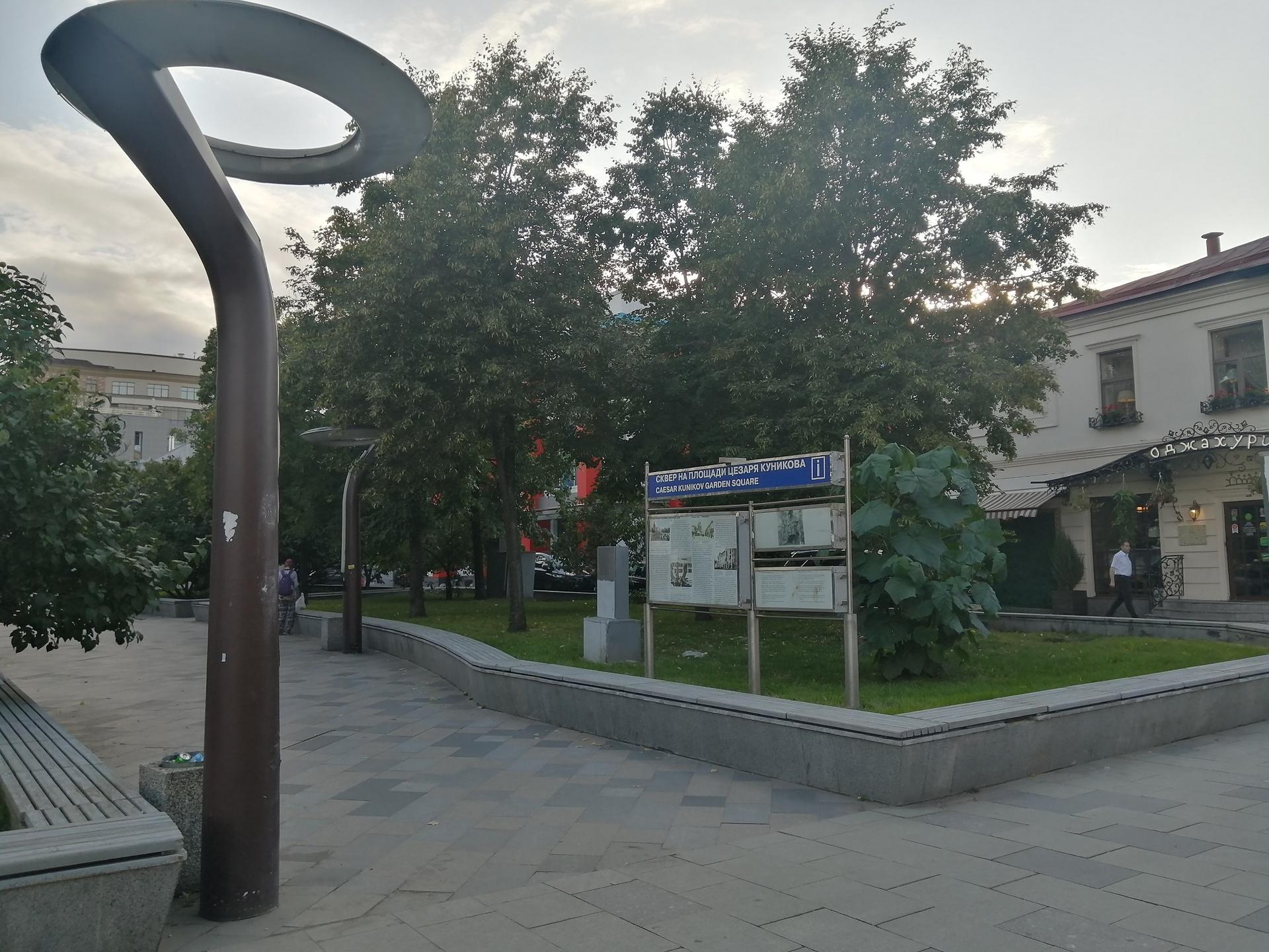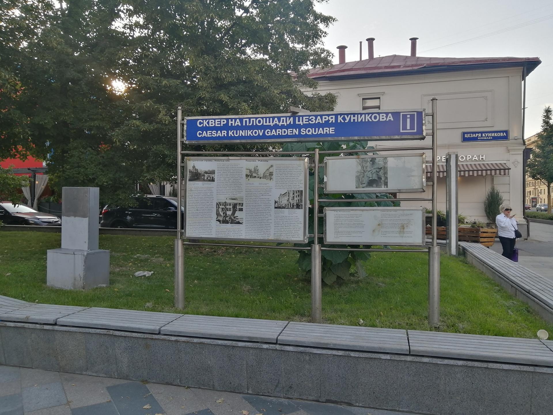 Название площадь получила через год – здесь было увековечено имя офицера Цезаря Львовича Куникова, сражавшегося в годы Великой Отечественной войны на Черном море. В феврале 43-го майор во главе десантного отряда успешно закрепился на плацдарме «Малая земля», что как раз в районе Новороссийска, но через несколько дней погиб от фашистской мины.