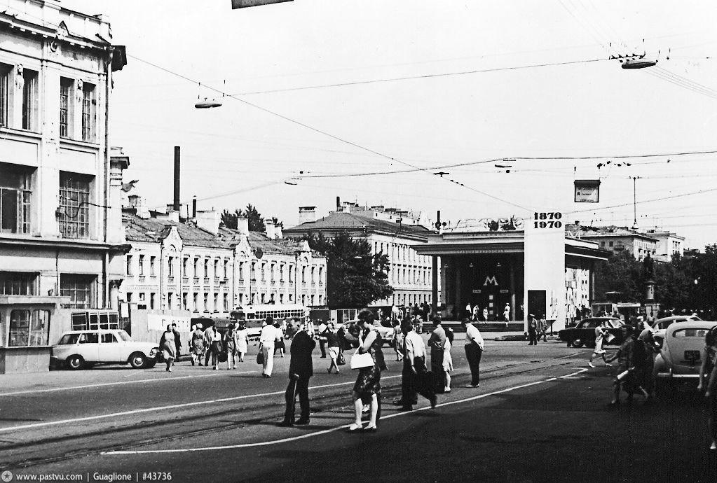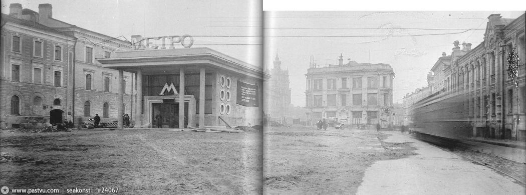 До 1934 года площади у «ворот» не было. Вплотную к Мясницкой со стороны Чистопрудного бульвара подступал громоздкий трехэтажный дом (такие дома в XIX веке были устроены на концах всех бульваров – в них располагались небольшие гостиницы, меблированные комнаты и трактиры). Дом снесли в связи со строительством вестибюля станции метро Кировская (Чистые пруды), который таким образом оказался в центре просторной, открытой со всех сторон площади.