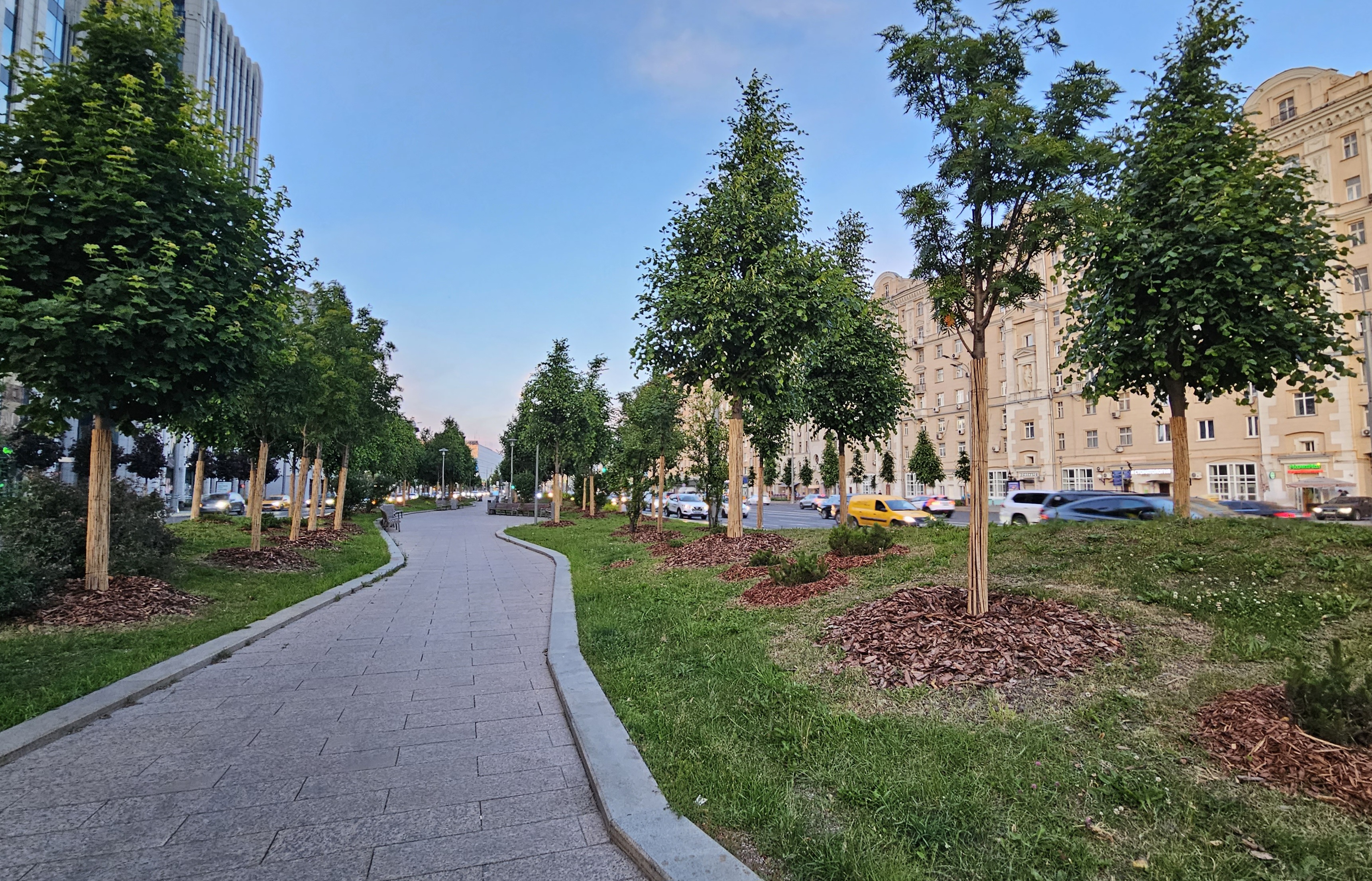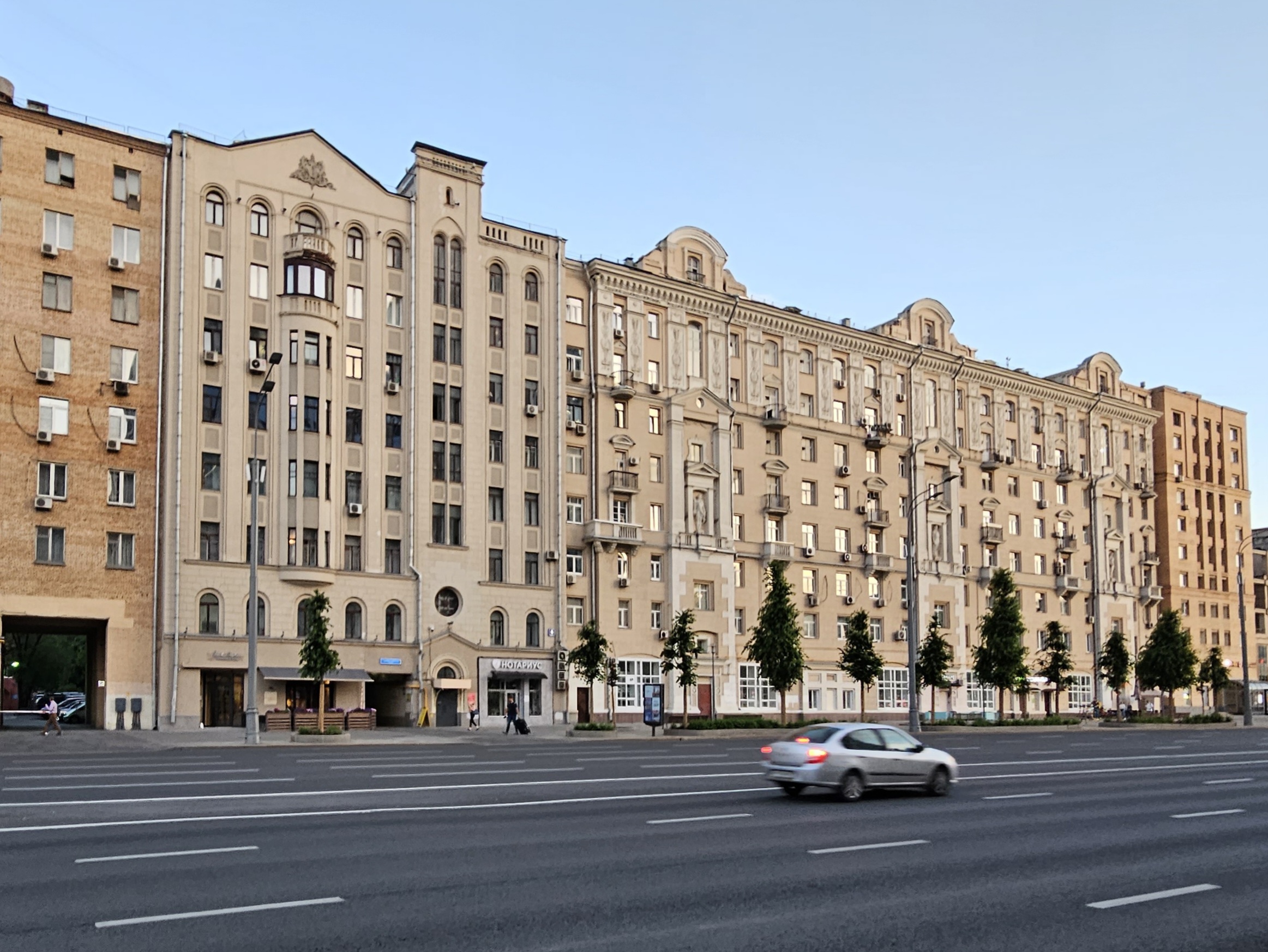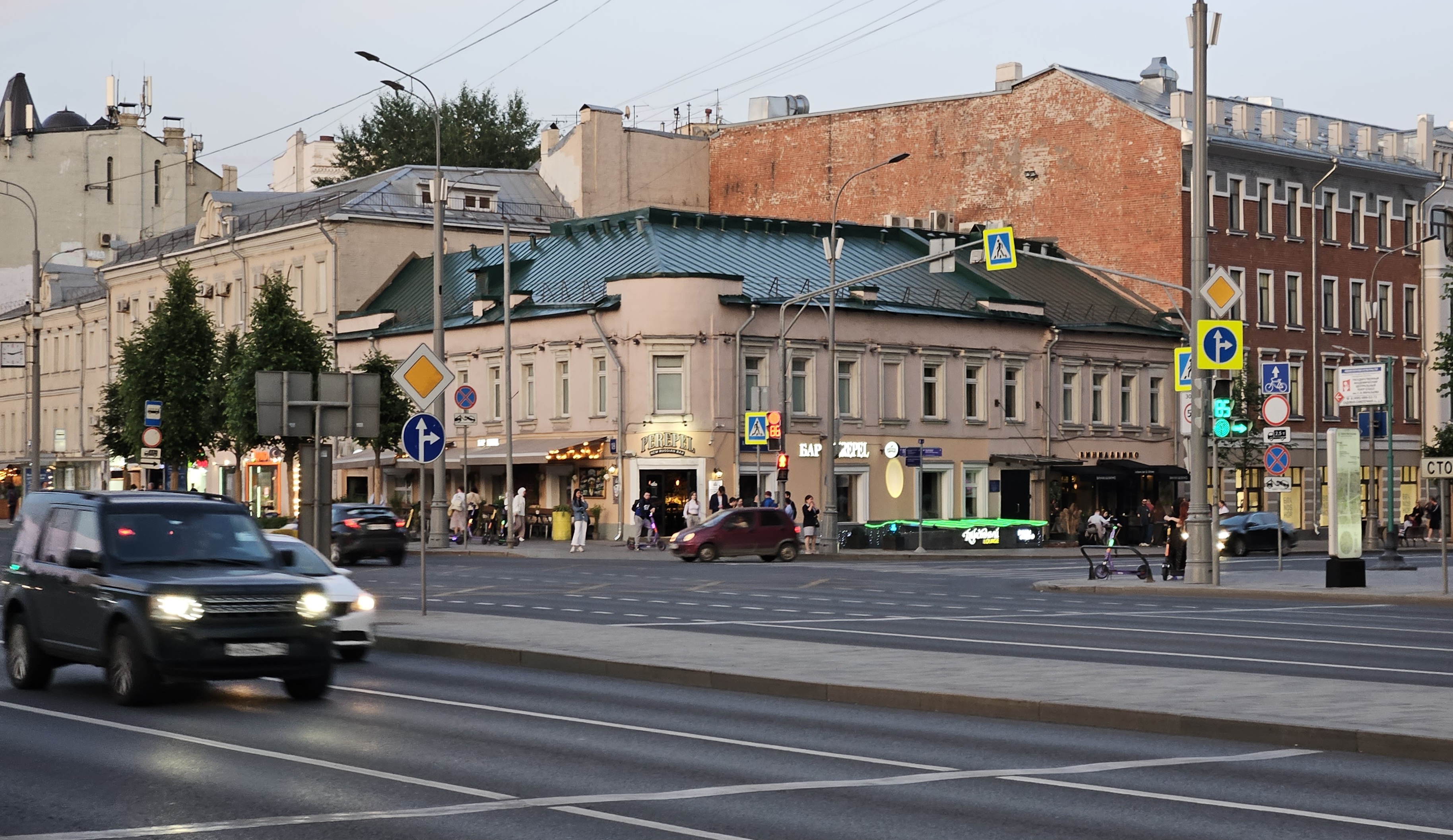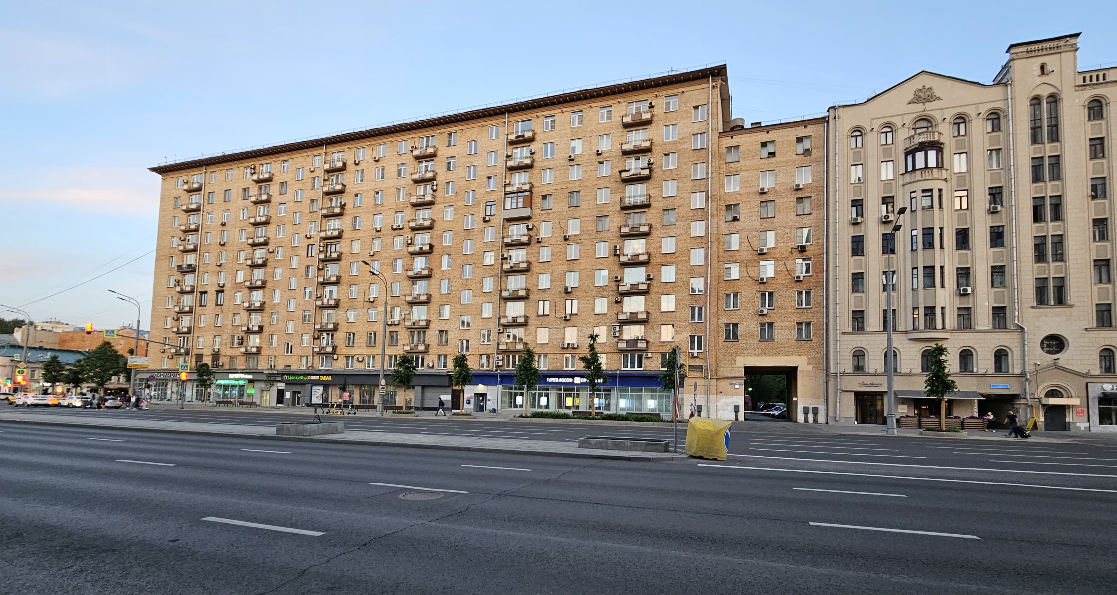 Садовая-Каретная улица, начинаясь от Лихова переулка, некогда круто спускалась к Самотечной площади, через которую протекала река Неглинная. Теперь уклон сильно смягчен, а для транзитного транспорта и вовсе неощутим, благодаря построенной в 1967 году эстакаде.