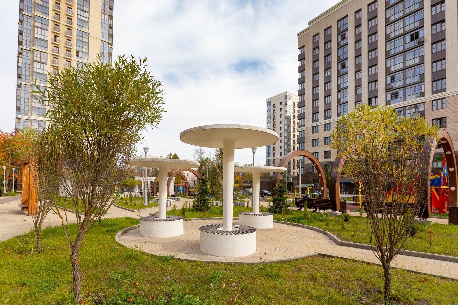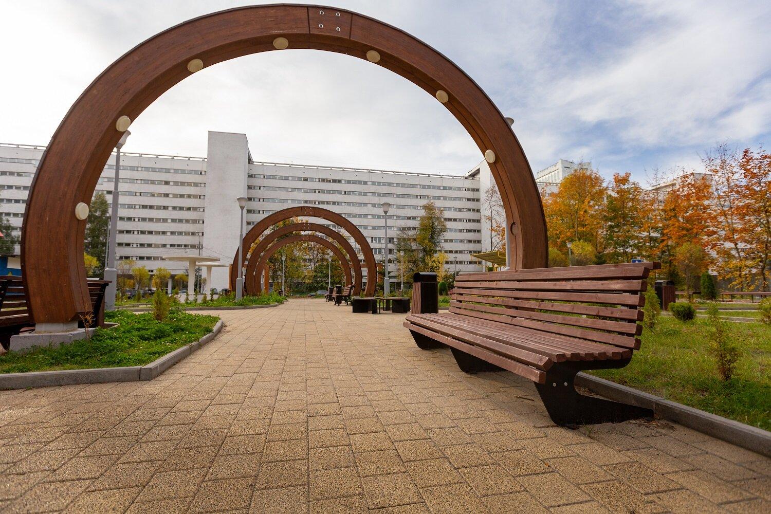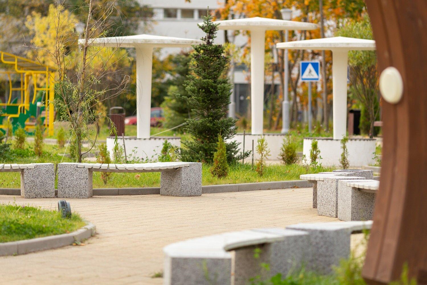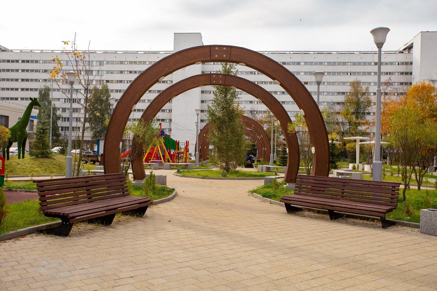 Расположен во дворе дома «Флейты». Пространство обустроено в 2019 году по программе создания комфортной городской среды «Мой район» на месте парковки.