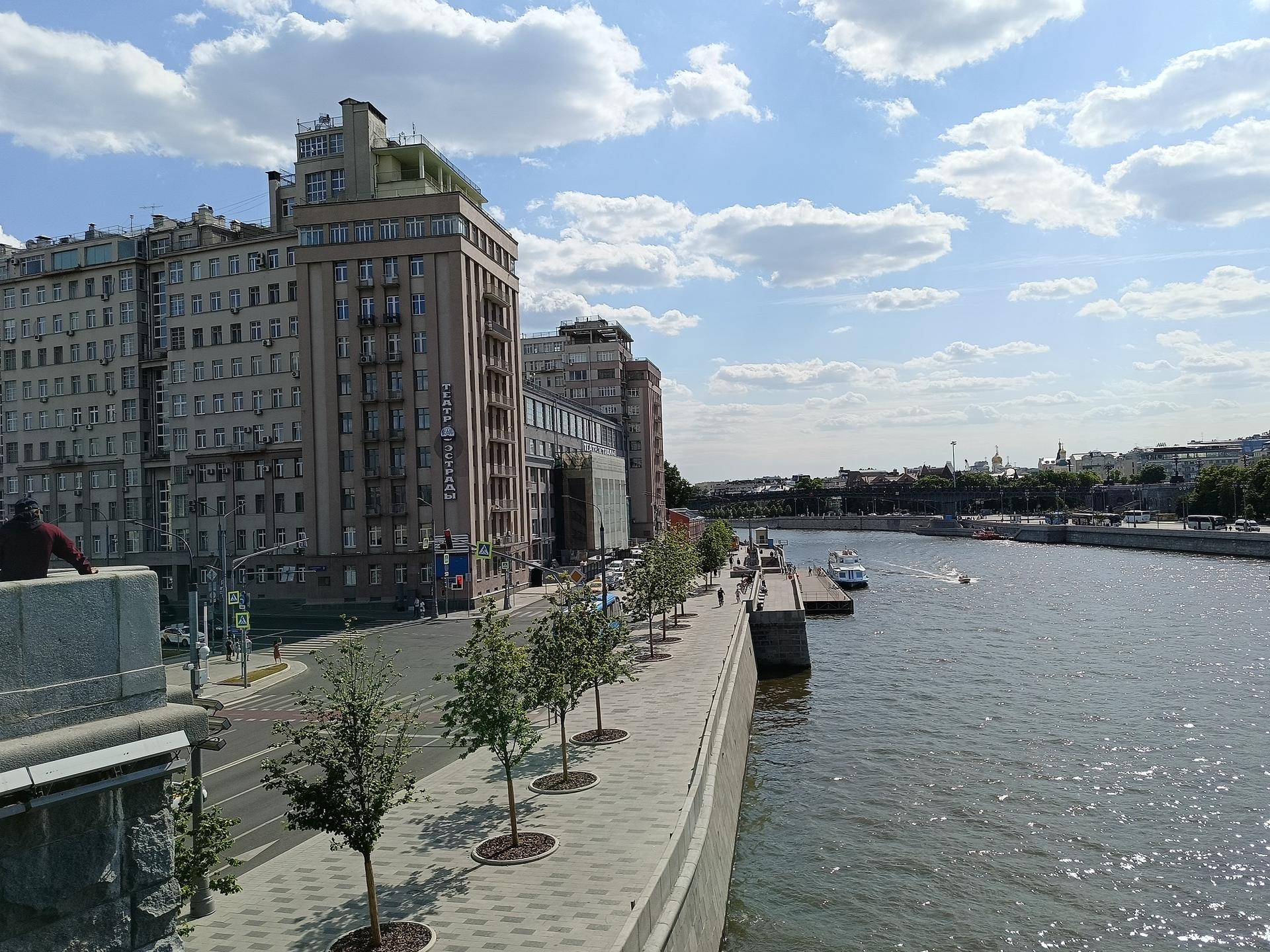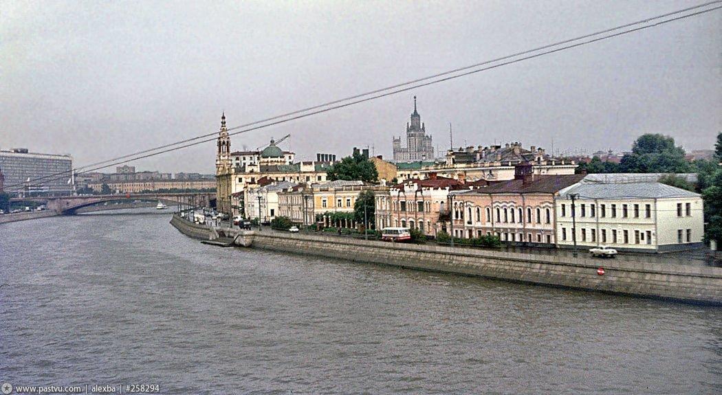 Софийская набережная идет от Большого Каменного и до Большого Москворецкого моста, - она расположена прямо напротив Кремля. Исторически здесь были низкие болотистые берега, отчего до сих пор местность называют «болотом». С XVI века на месте Болотной площади располагался Великий луг. В XVII-XVIII веках луг использовался как место публичных казней: в частности, здесь в 1775 году был казнен Емельян Пугачев с соратниками. Однако луг использовался и для праздничных гуляний: в 1724 году здесь проходили торжества по случаю коронации Елизаветы Петровны, отчего место стали называть Царицыным лугом. Осушить болота удалось только во второй половине XVIII века, когда был прорыт Водоотводный канал, превративший эту местность в настоящий остров. С одной стороны теперь остров омывается Москвой-рекой, с другой – каналом. После осушения место стало использоваться как торг, после 1917 года было застроено амбарами, использовавшимися разными компаниями для хранения своей продукции или запасов. После войны, в 1946 году, на этом месте разбили сквер, украшенный фонтаном и газонами.