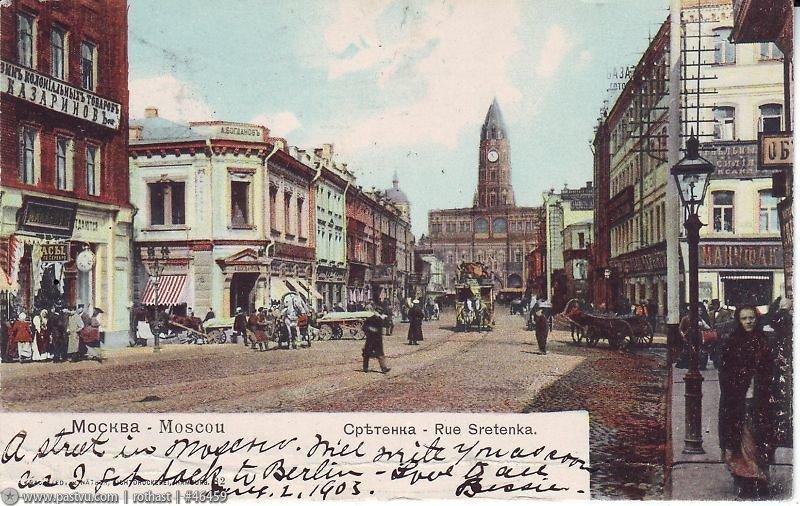 До середины XIX века Сретенкой также называлась Большая Лубянка, на которой расположен монастырь, дававший начало и название улице. Заканчивалась улица грандиозной Сухаревой башней, которая была снесена в советское время. Теперь на этом месте находится Сухаревская площадь и метро Сухаревская В XVI веке вдоль Сретенки находились слободы: Печатная и большая Пушкарская, Сретенская и Новая сретенская, называемая Панкратьевской чёрной слободой. Каждая из слобод строила на улице свою церковь, но до сегодняшнего времени дожили всего три. С XVII века район Сретенки с прилегающими переулками стал складываться как торгово-ремесленная, купеческая часть города, а благородные дворяне на ней своих усадеб не строили. Названия сретенских переулков отражают род занятий своих обитателей: Печатников, Колокольников, Пушкарев, Мясной, Просвирнин. На Сретенке было в изобилии всяких лавок — мясных, рыбных, зеленных, было множество мелких магазинчиков, трактиров, чайных, парикмахерских, дешевых меблированных номеров. А в самом конце Сретенки, у Сухаревой башни, раскинулся знаменитый, рынок, на который, как писал Гиляровский, «как на праздник, шла вся Москва, и подмосковный крестьянин, и заезжий провинциал». Несмотря на небольшую протяженность (длина улицы составляет всего 800 метров), Сретенка испещрена переулками. Писатель-москвовед А. И. Вьюрков обратил внимание на одну характерную черту улицы Сретенки: на ней нет ворот. Все дворы выходят только в прилегающие переулки. Этот факт не случаен — купцы-домовладельцы старались использовать каждый метр так называемой «красной линии» под торговые помещения с витринами, а переулок был при каждом доме. Поэтому многие переулки носят имя своих домовладельцев: Ананьевский, Ащеулов, Большой Головин, Даев, Луков, Малый Головин, Панкратьевский, Рыбников, Селиверстов и другие. Сегодня Сретенка отлакирована новодельными фасадами, но в ее переулках еще сохранились знаменитые московские дворы.