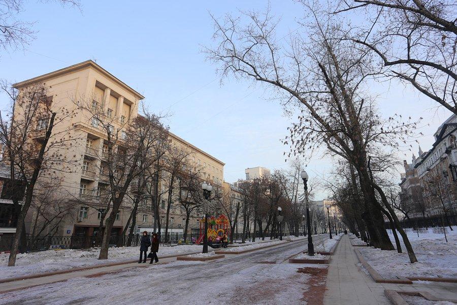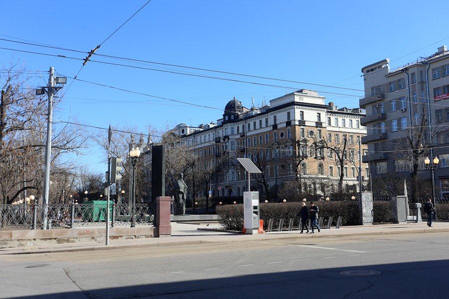 Сейчас бульвар начинается памятником Н.К. Крупской. Надежда Константиновна работала в Наркомпросе, находившимся с 1920 по 1925 г. в доме страхового общества «Россия» на бульваре. А до 1917 г. на месте памятника стоял дом с одним из самых известных московских трактиров «Саратов», единственным в городе, где хозяева не отбирали у половых чаевые и платили им зарплату. Его владельцами были Дубровин, затем Севостьянов. Трактир упоминает летописец Москвы Гиляровский.
