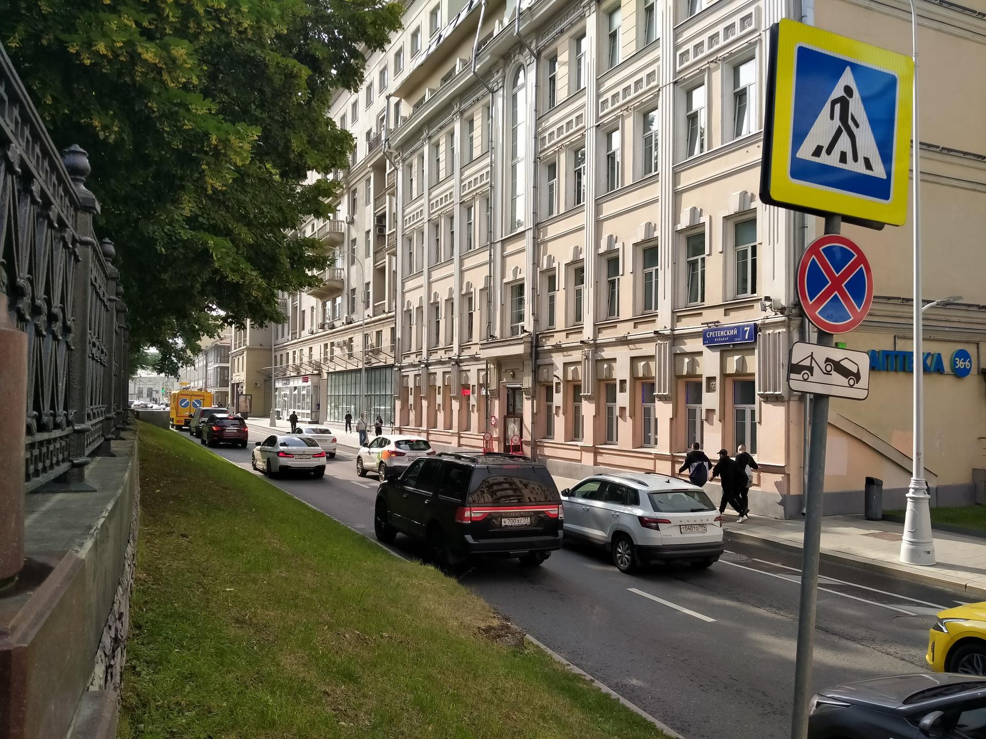 Почти всю внутреннюю сторону бульвара занимает грандиозный дом страхового общества «Россия».