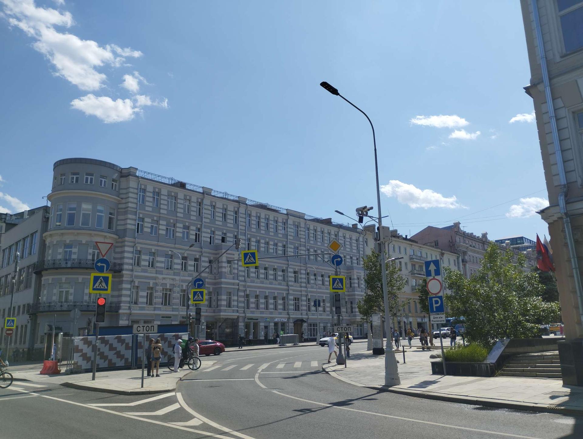 Нумерация домов ведется от Пушкинской площади. Четная сторона улицы занята рядом многоэтажных доходных домов.