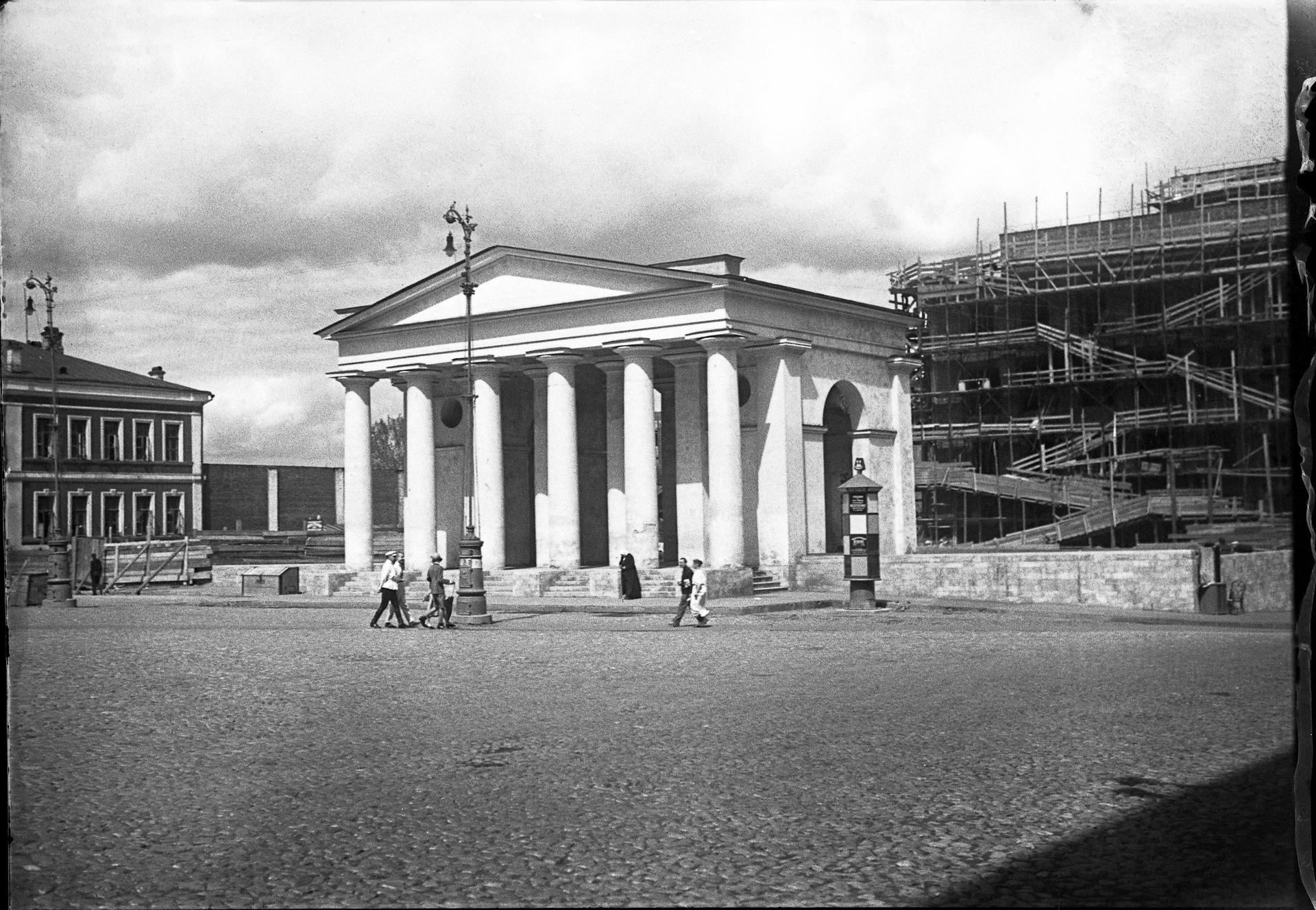 Владение напротив дома московских генерал-губернаторов было расчищено в 1790 году после сноса ветхих деревянных зданий и предназначалось под плац-парад – площадь для военных парадов и развода караула. Расчисткой территории, как и строительством генерал-губернаторского дома, занимался архитектор М.Ф. Казаков.