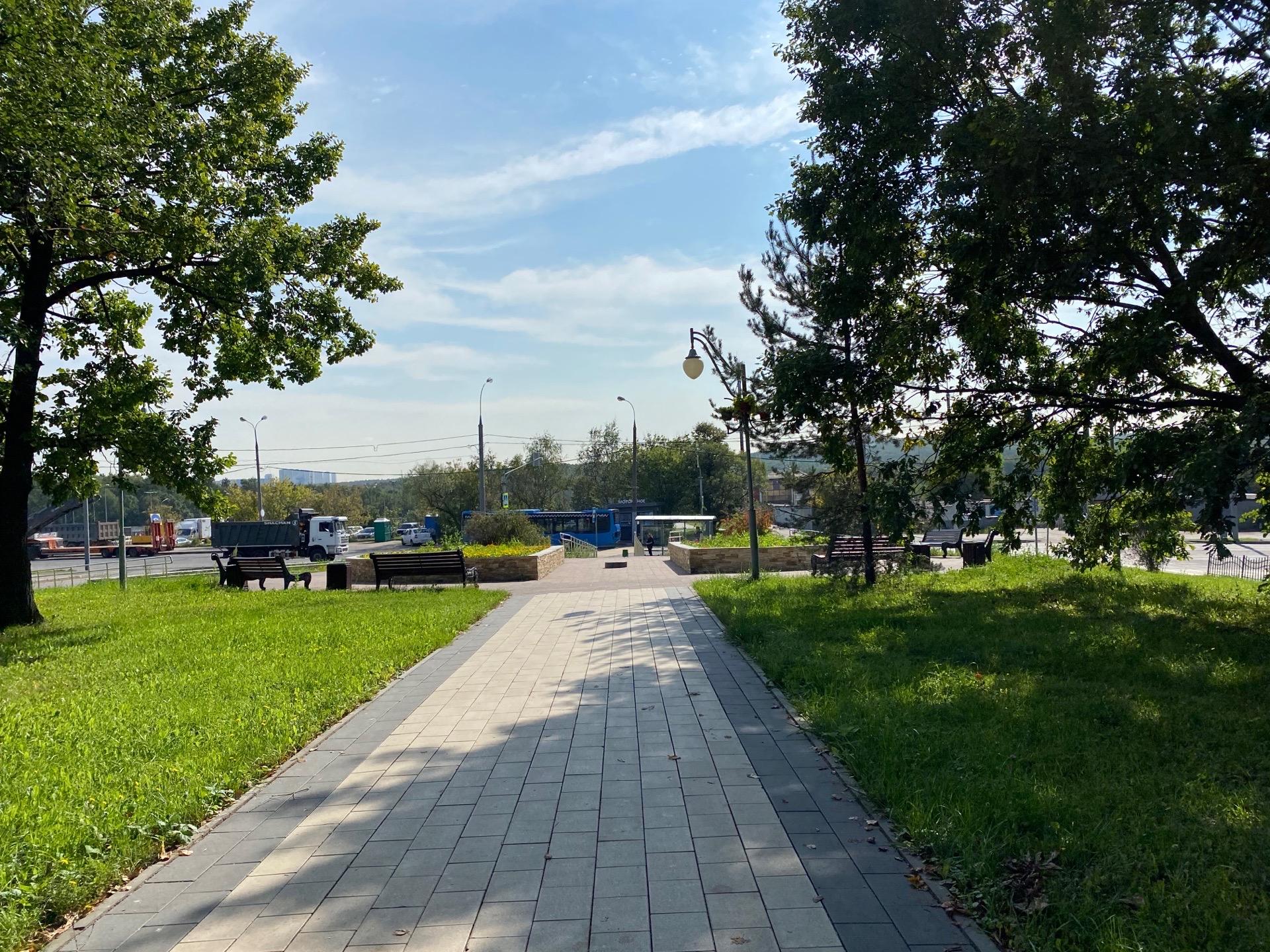 Пешеходную дорожку отделяют от проезжей части ряды деревьев, преимущественно берез и сосен. По замыслу Гагарина по аллее можно было пройти из его усадьбы Ясенево к поляне возле Верхнего Знаменского пруда на реке Битце. При строительстве МКАД часть аллеи была уничтожена.